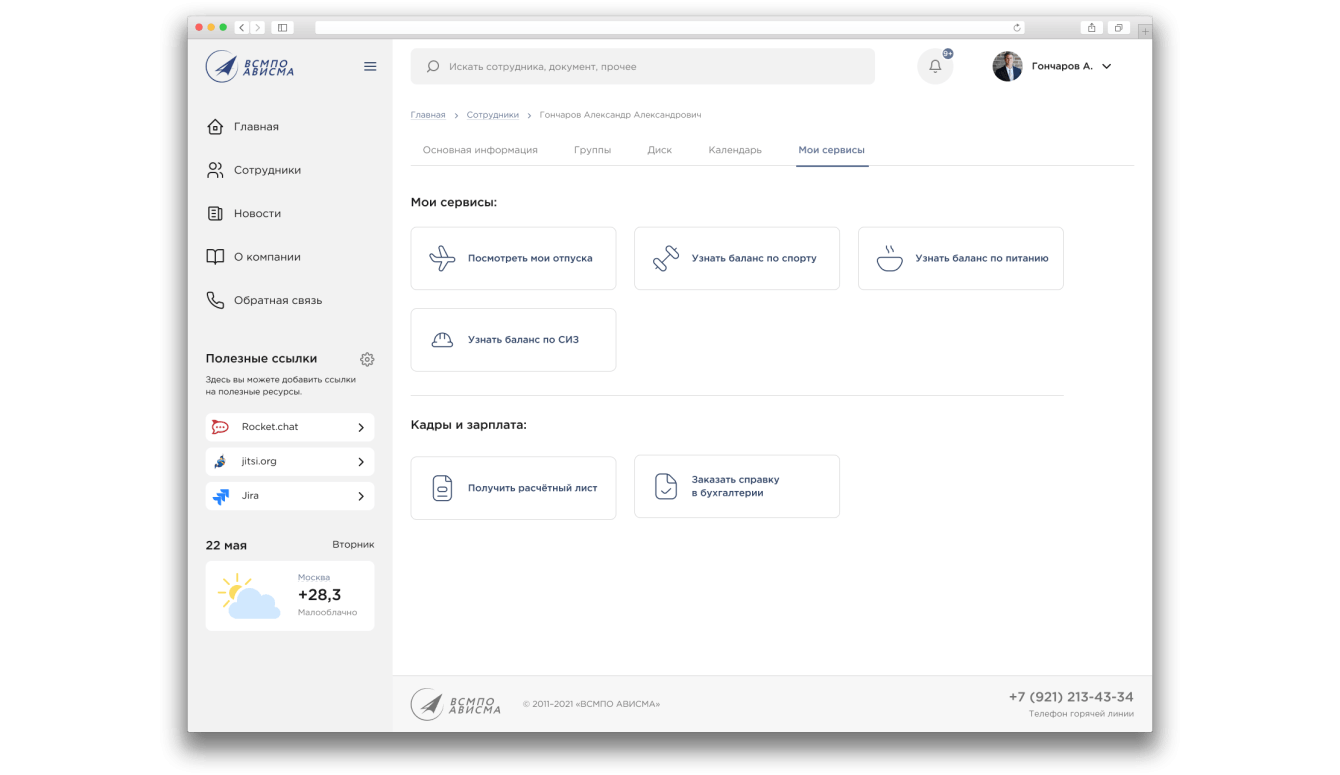 В разделе «Мои сервисы» сотрудники Корпорации могут самостоятельно решить различные кадровые вопросы.