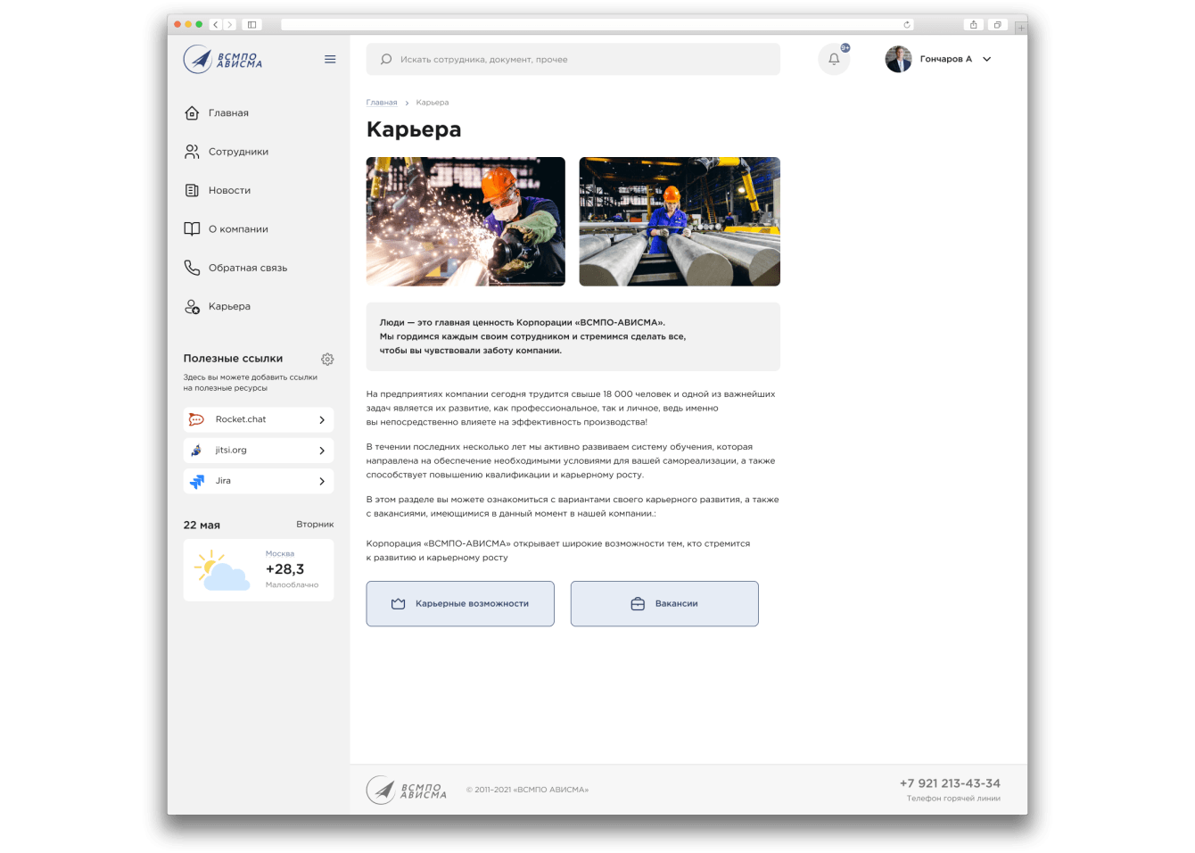 В этом разделе сотрудники могут ознакомиться с внутренними вакансиями Корпорации и узнать больше о вариантах своего карьерного развития
