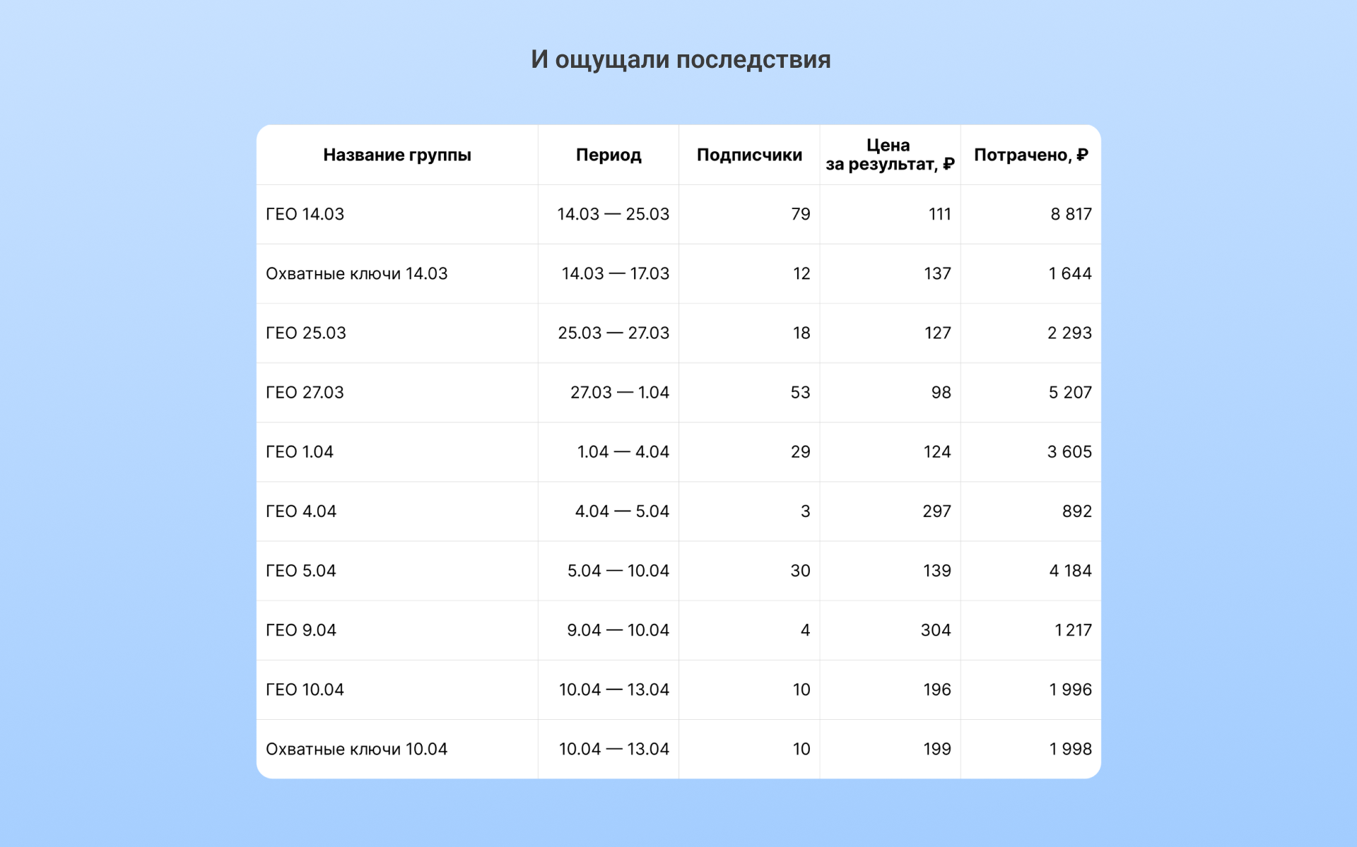 По итогу мы закрыли запрос клиента и снизили стоимость подписчика.