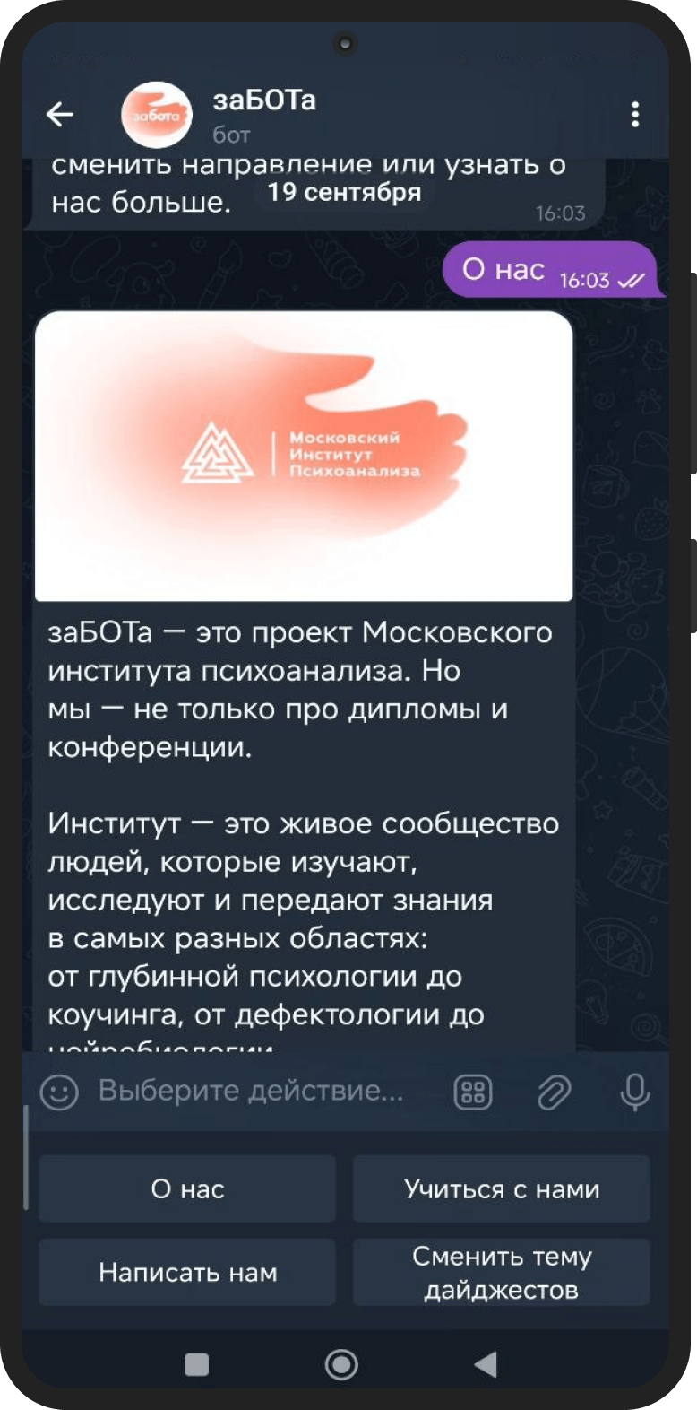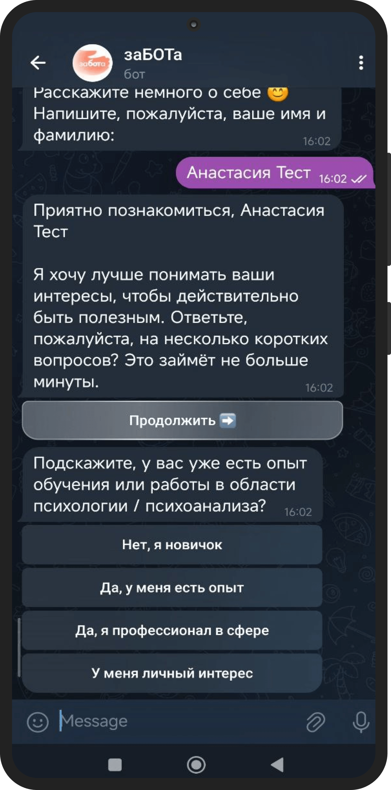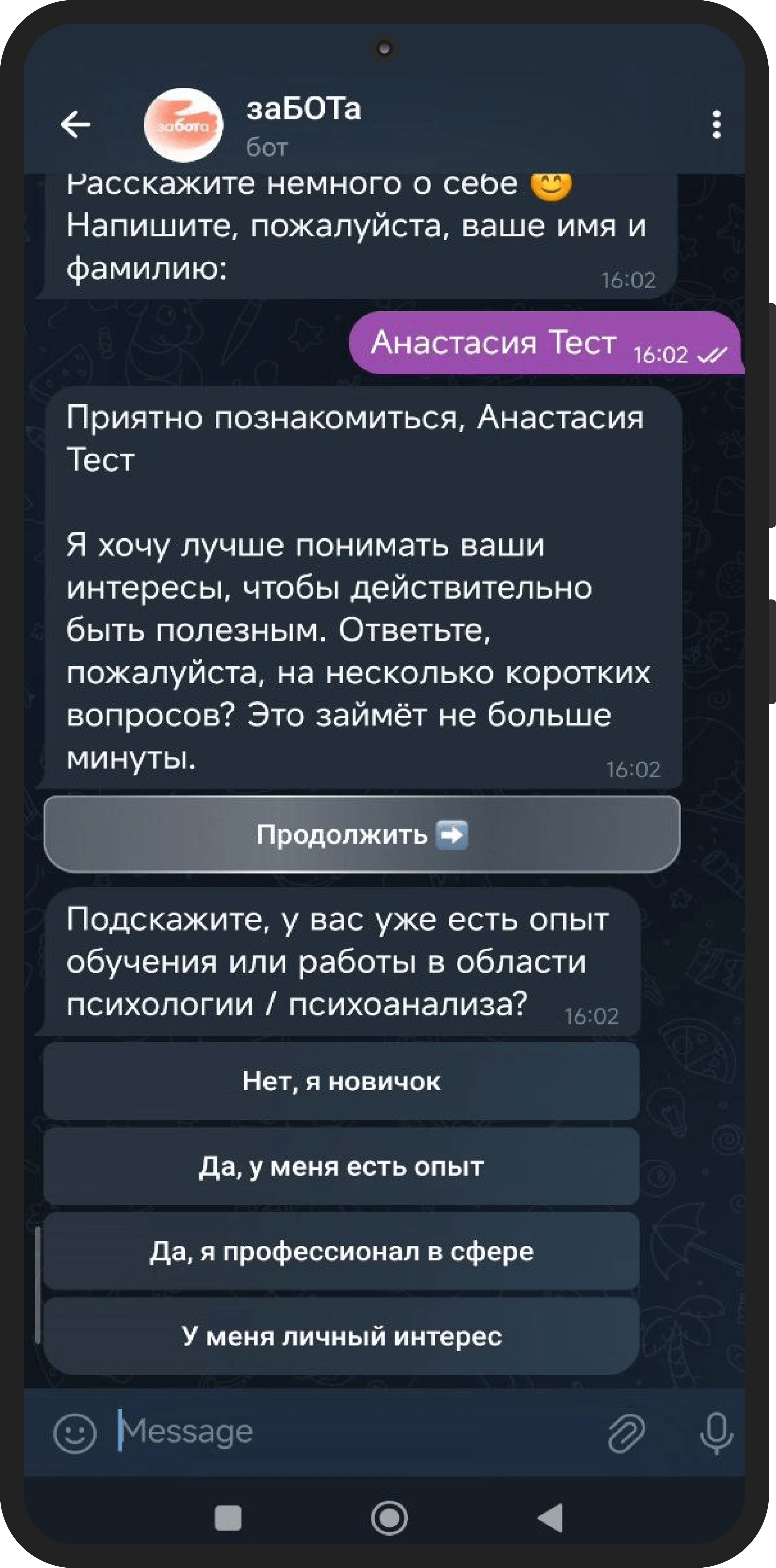 Работа с МИП — пример продуктивного партнёрства. Клиент активно участвовал в проекте, вносил предложения, помогал уточнять логику сегментации и контентную часть. Благодаря такому взаимодействию «заБОТа» получилась не просто функциональной, а по-настоящему живой. Проект ещё будет развиваться, и мы с нетерпением ждём первых отзывов пользователей.