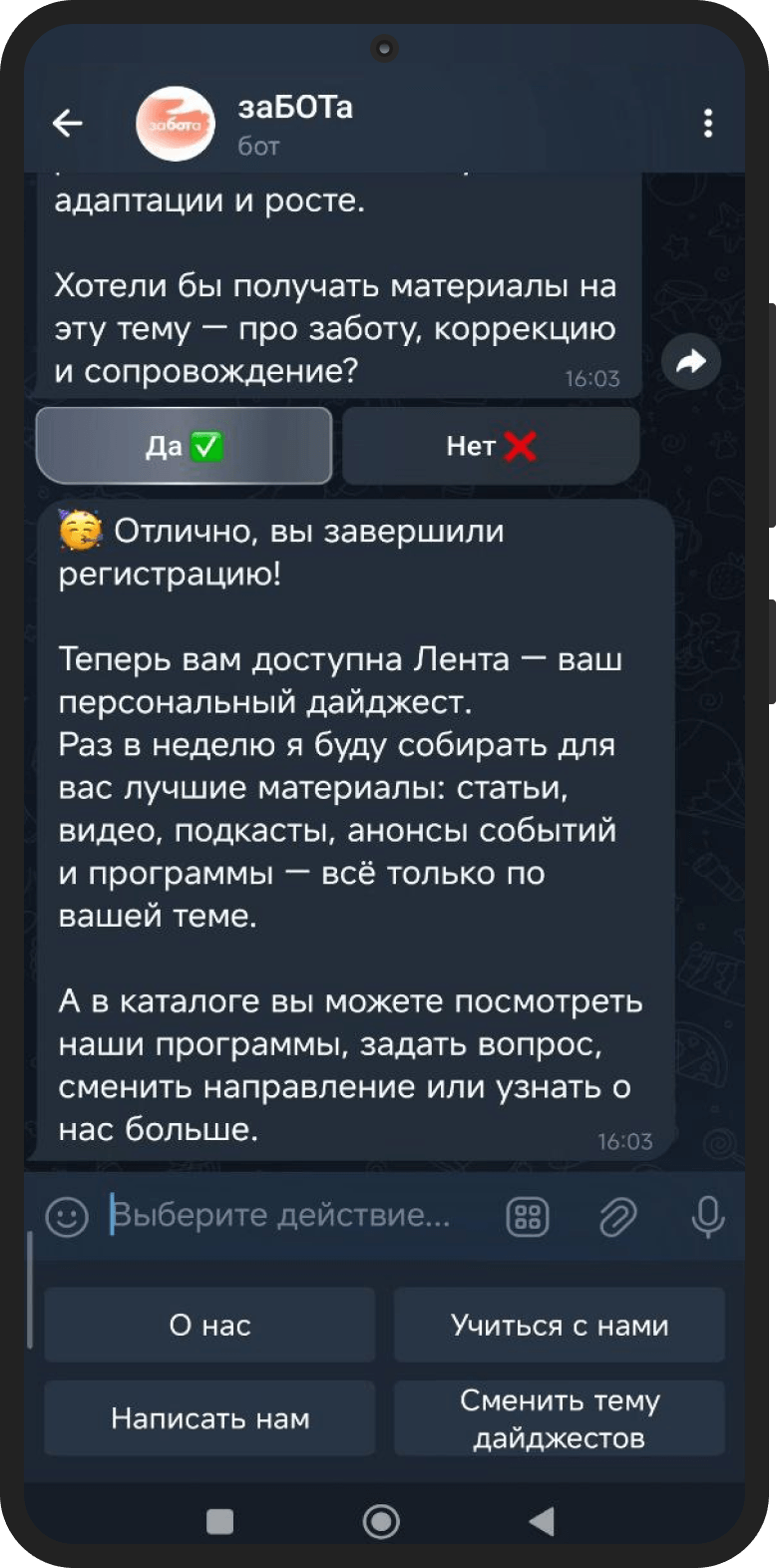 Статистика по пользователям появится после официального релиза, но уже сейчас понятно: «заБОТа» делает ровно то, что обещает её название — заботится о каждом.