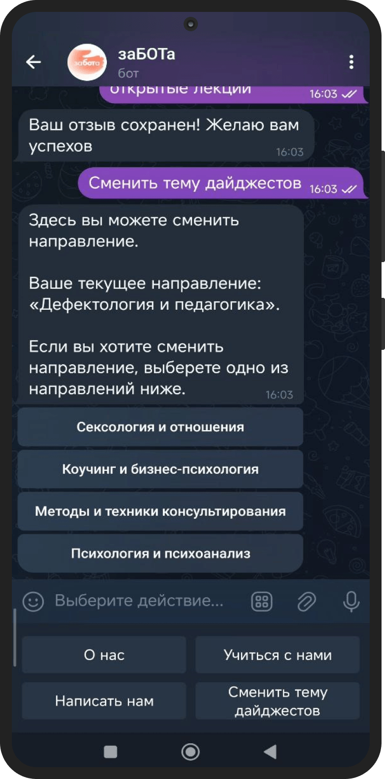 Сменить тему дайджестов — возможность поменять направление и получать другой контент