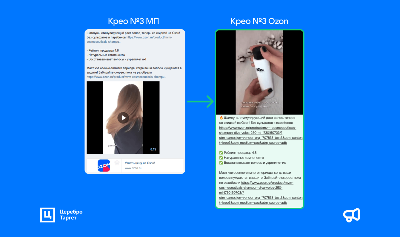 • Много нерелевантного трафика. Здесь у нас есть аргумент против. Мы размещали аналогичные креативы в одной и той же подборке сообществ для обоих маркетплейсов. При этом на Ozon конверсия выше — значит, дело не в трафике.