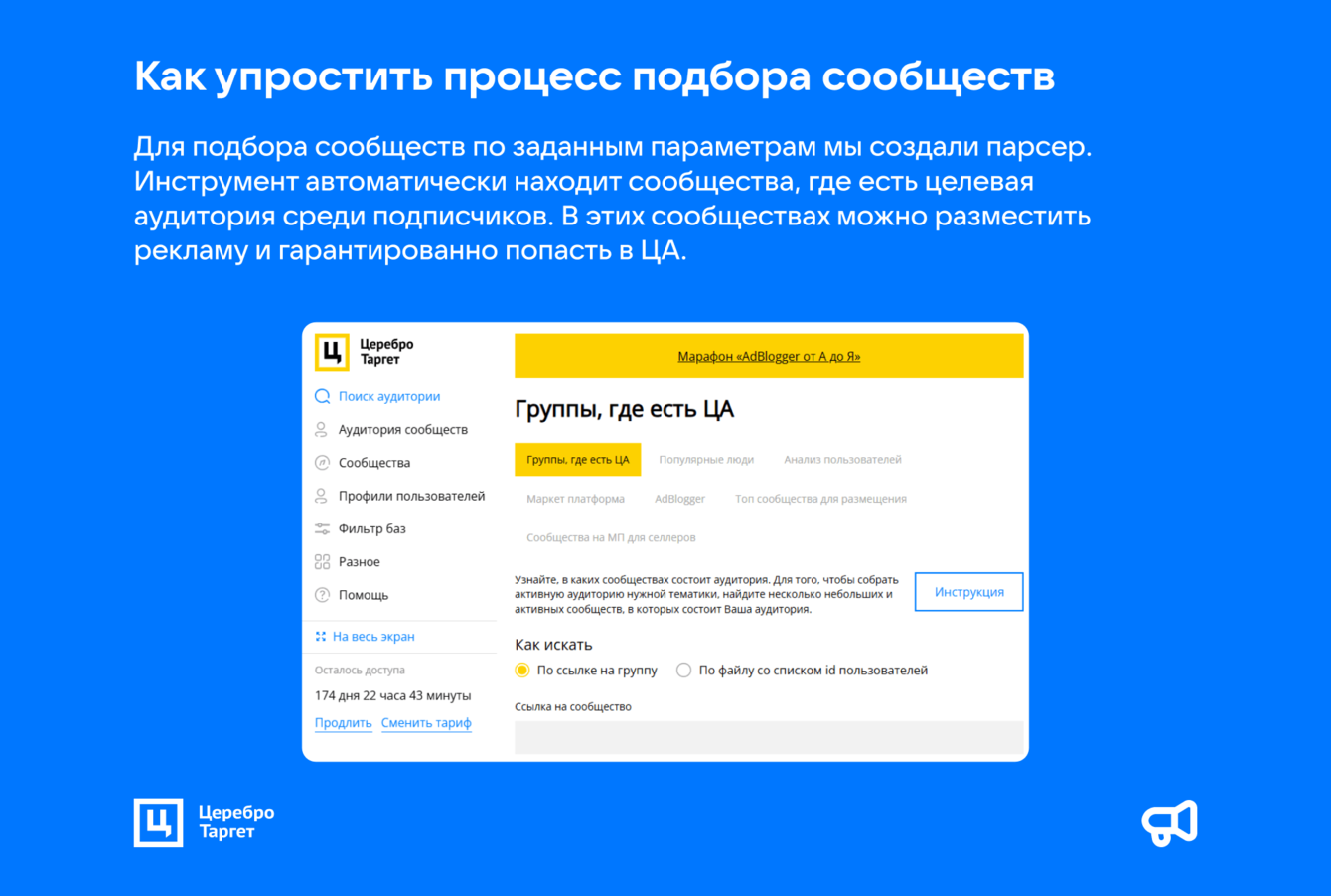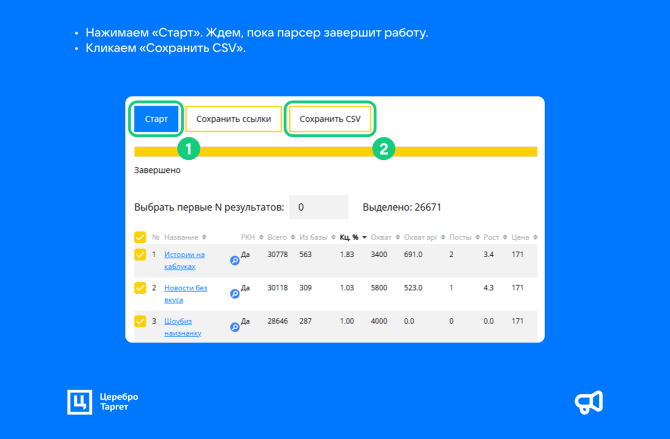 Дальше покажем, как подобрать сообщества для размещения через парсер Ц.