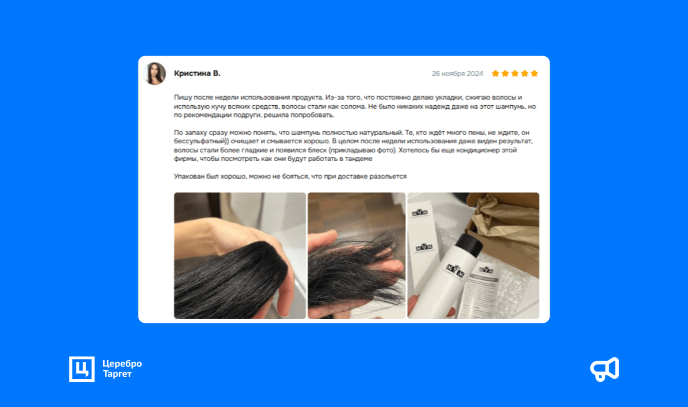 // «Положительные отзывы важны для продвижения, потому что они служат социальным доказательством. Аудитории проще решиться на покупку товара, когда другие хорошо о нем высказываются», — специалист Церебро. //
