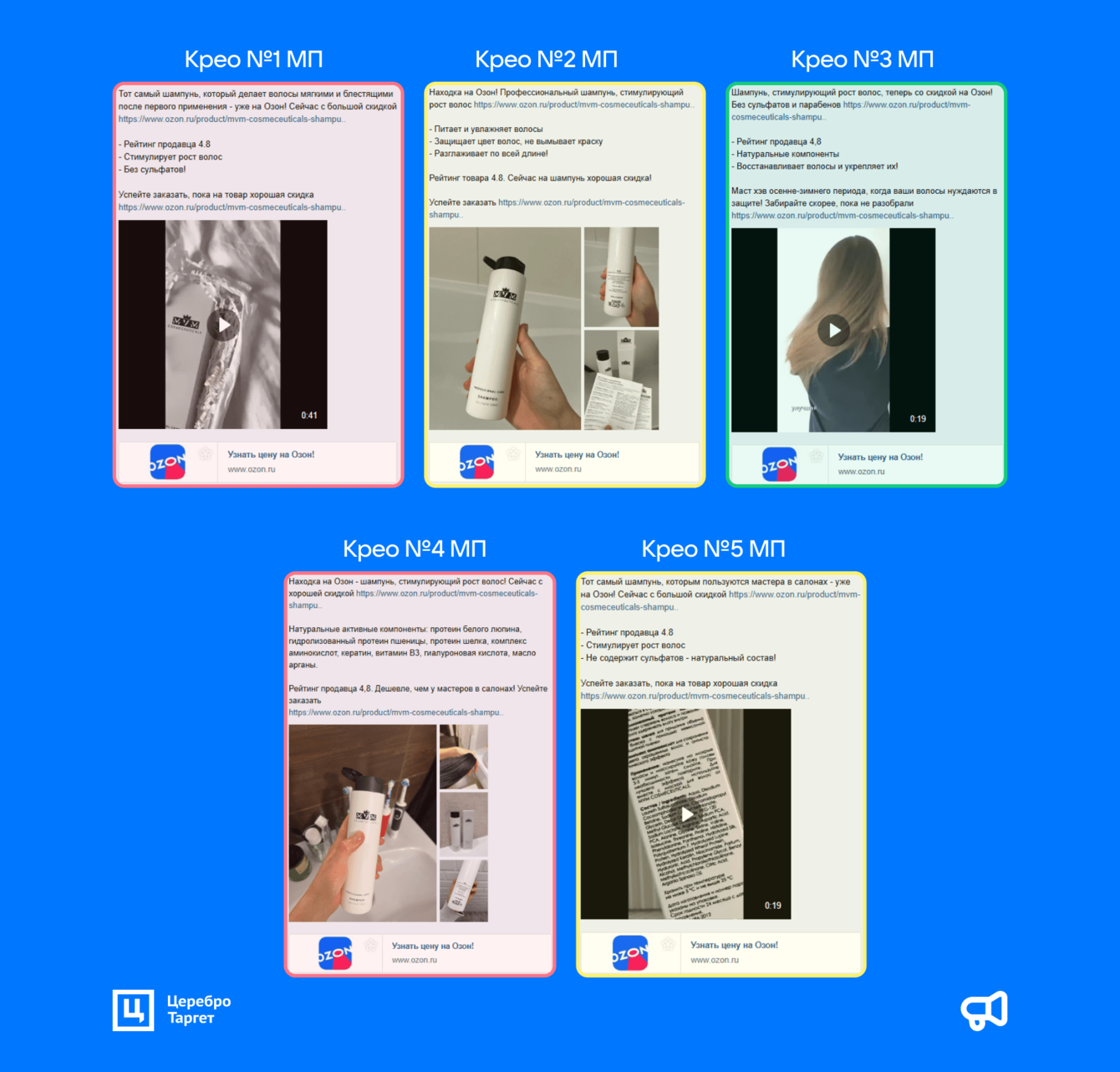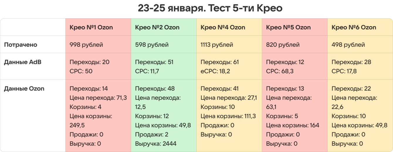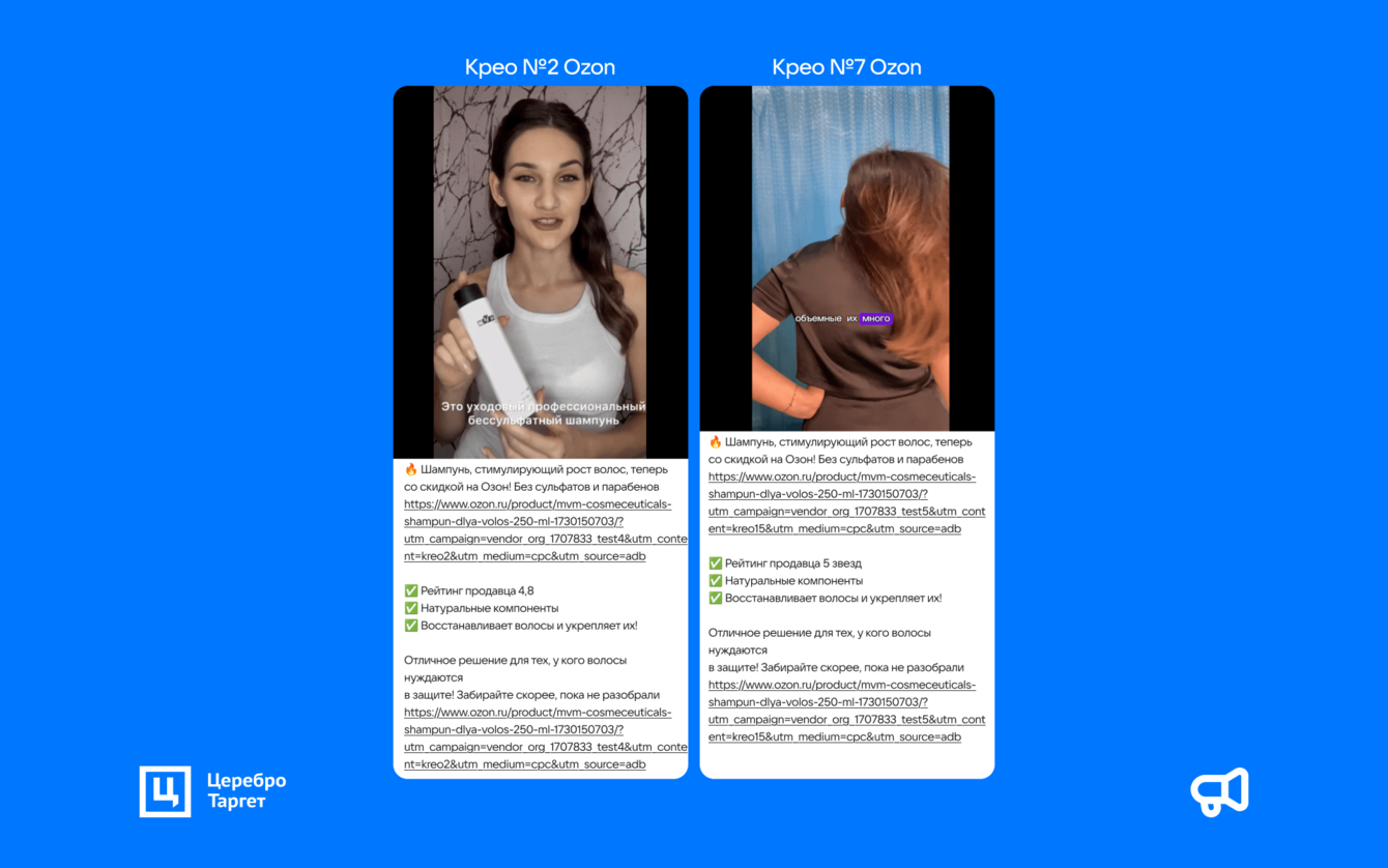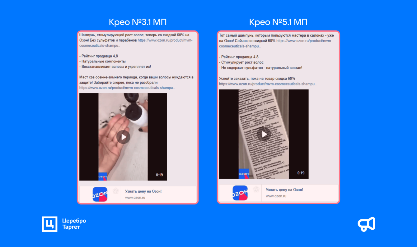 Креативы-лидеры. За всю РК мы создали два креатива-лидера: Крео №2 и №7 Ozon.