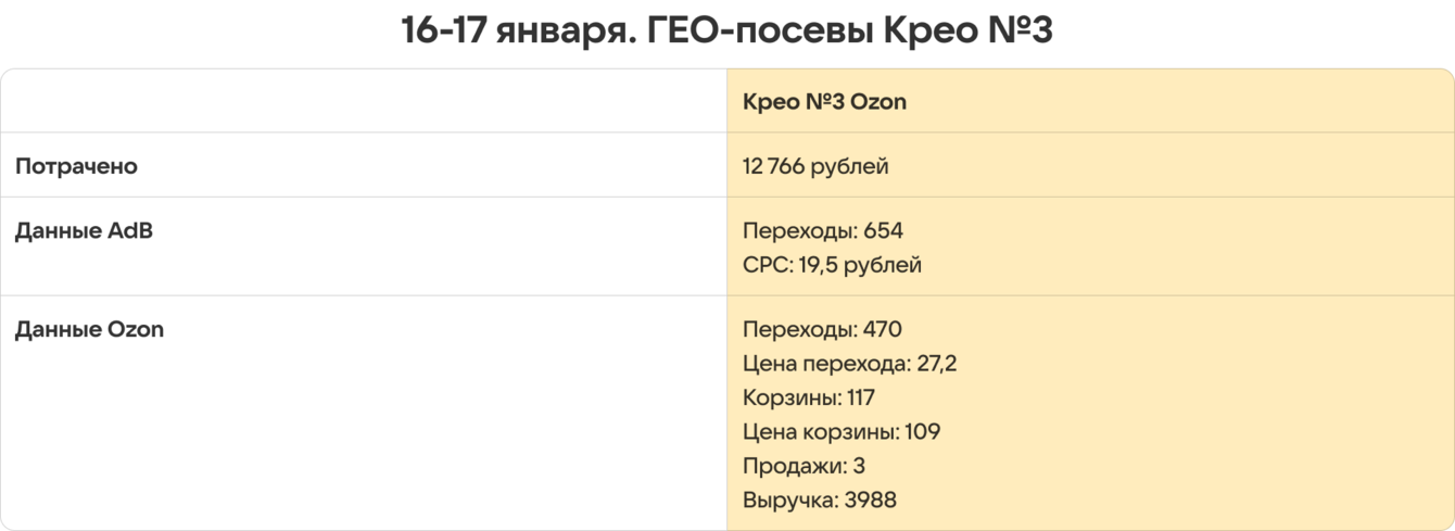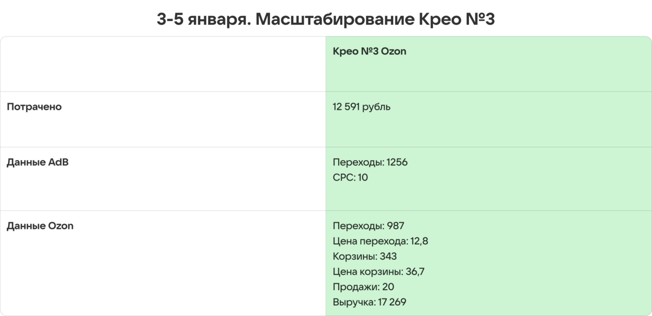 Нужно было протестировать посевы и оценить, подходят ли они для бизнеса → Запустили РК, сделали креативы-лидеры и вышли в плюс на Ozon.