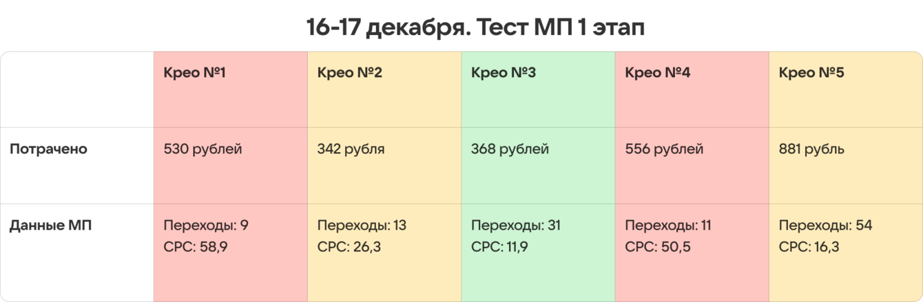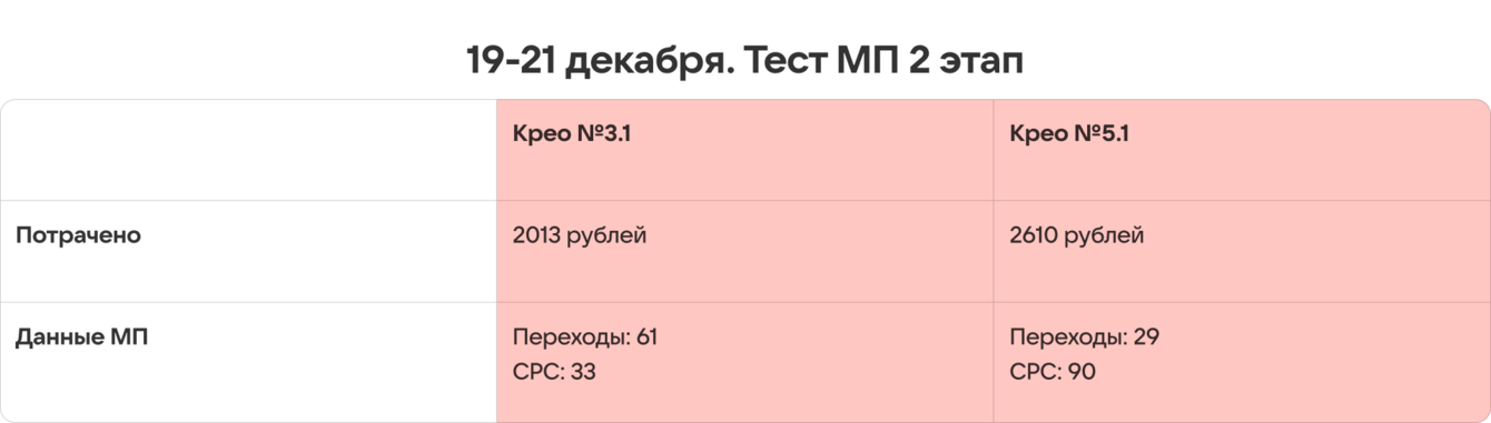 К концу РК эти креативы выгорели, и наши спецы начали работу над новым прорывным постом.
