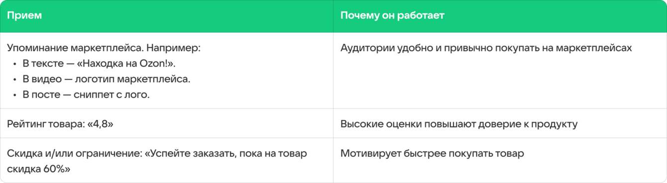 Маркетплейсы положительно реагируют на переходы с внешних ссылок на карточку товара. Алгоритмы воспринимают продукт как более востребованный и сами начинают продвигать карточку товара внутри маркетплейса. Это может привести к росту продаж.