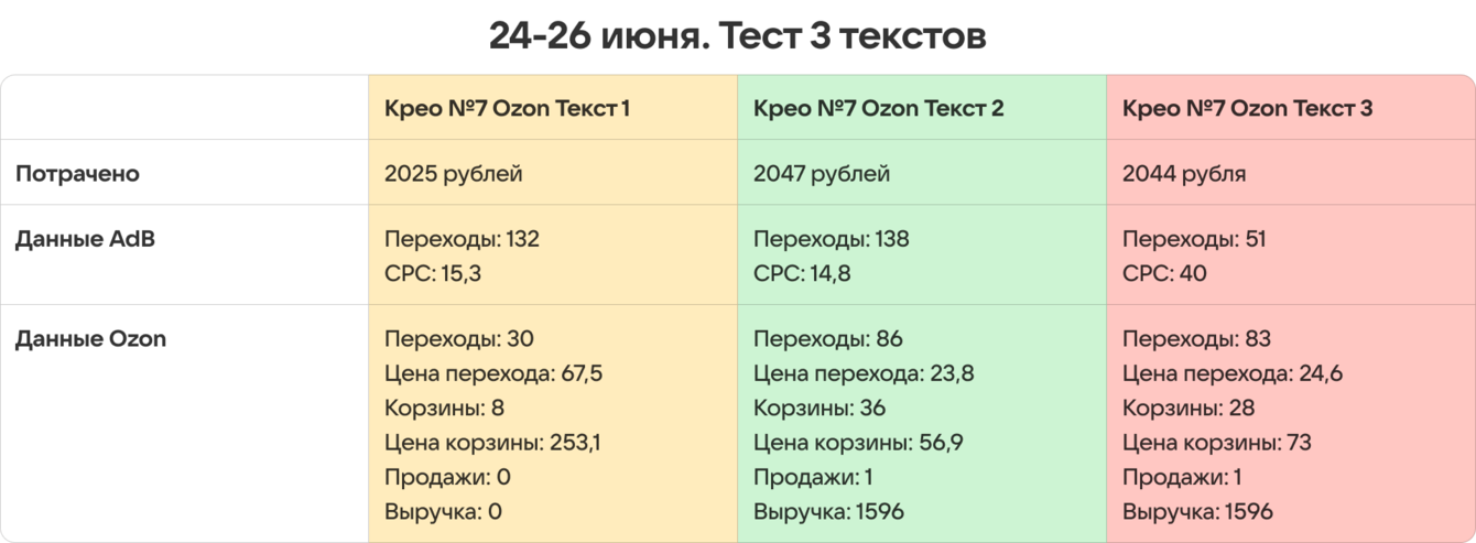 24-26 июня. Тест 3 текстов для Крео №7 Ozon