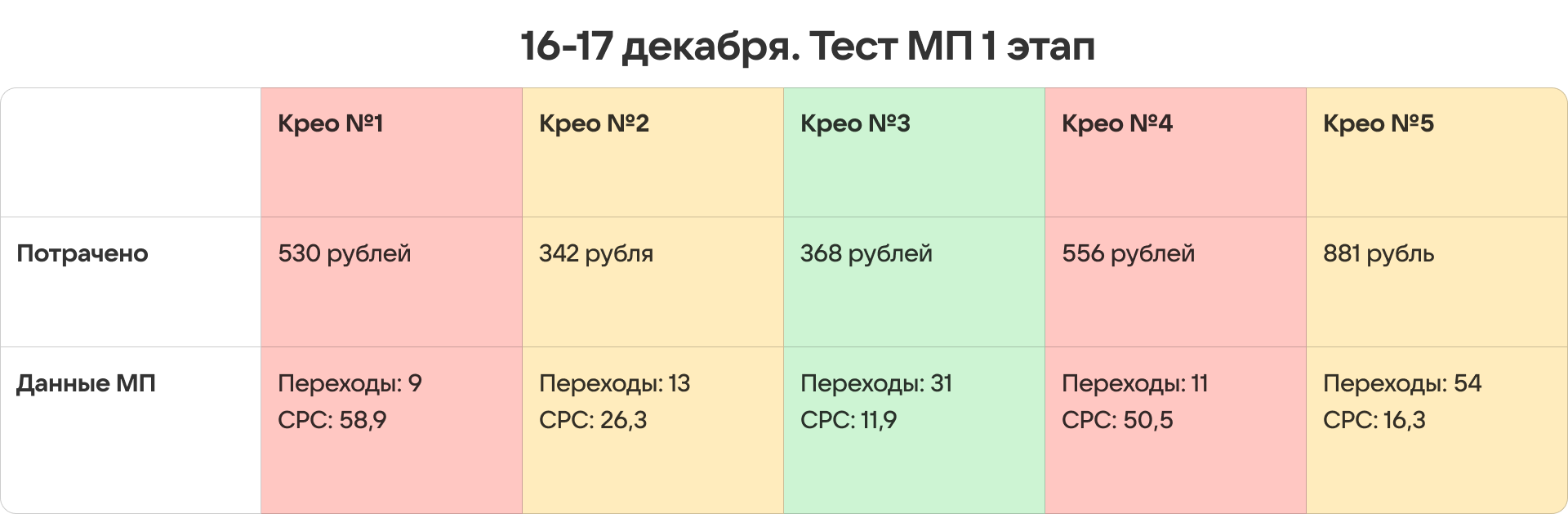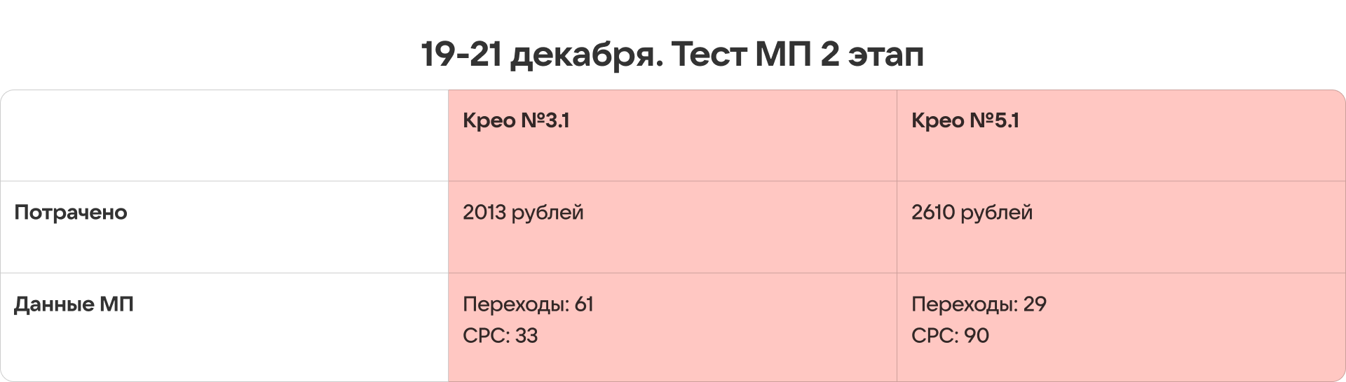 К концу РК эти креативы выгорели, и наши спецы начали работу над новым прорывным постом.