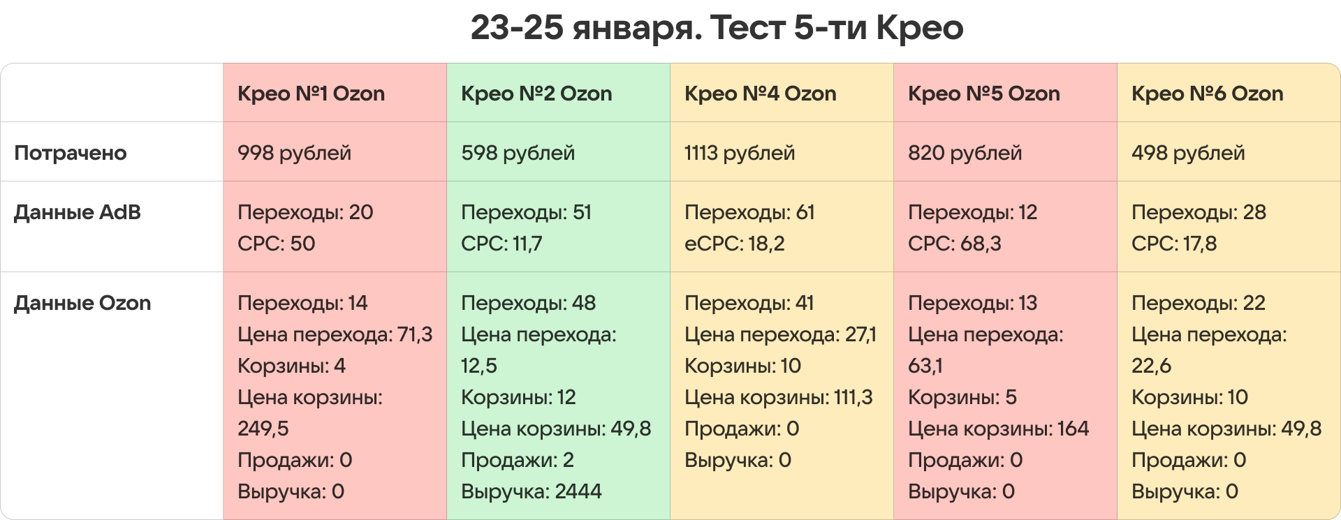 Креативы-лидеры. За всю РК мы создали два креатива-лидера: Крео №2 и №7 Ozon.