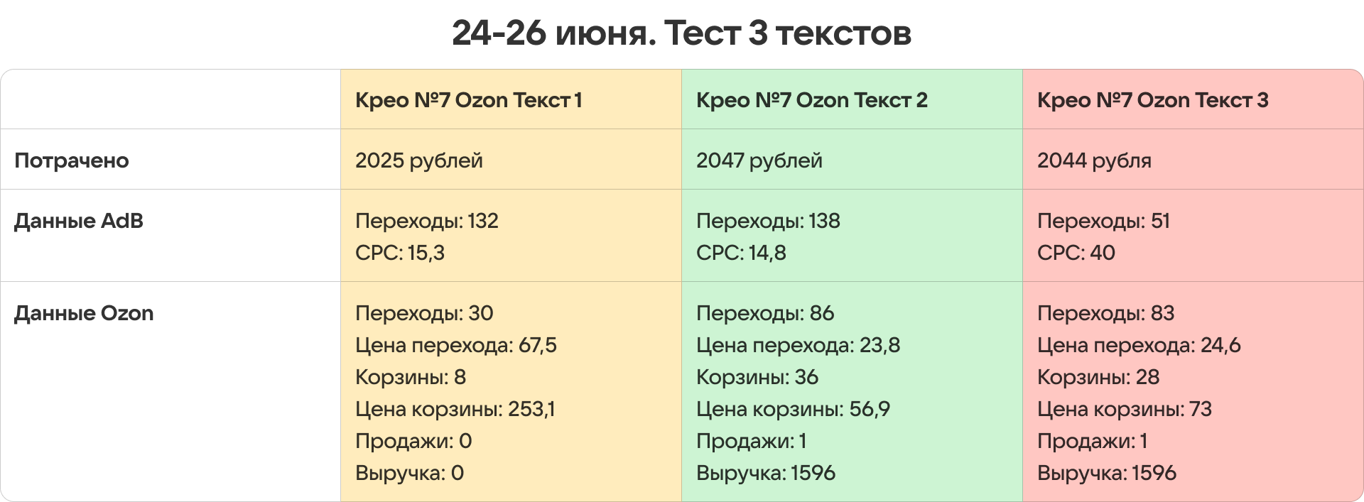 24-26 июня. Тест 3 текстов для Крео №7 Ozon