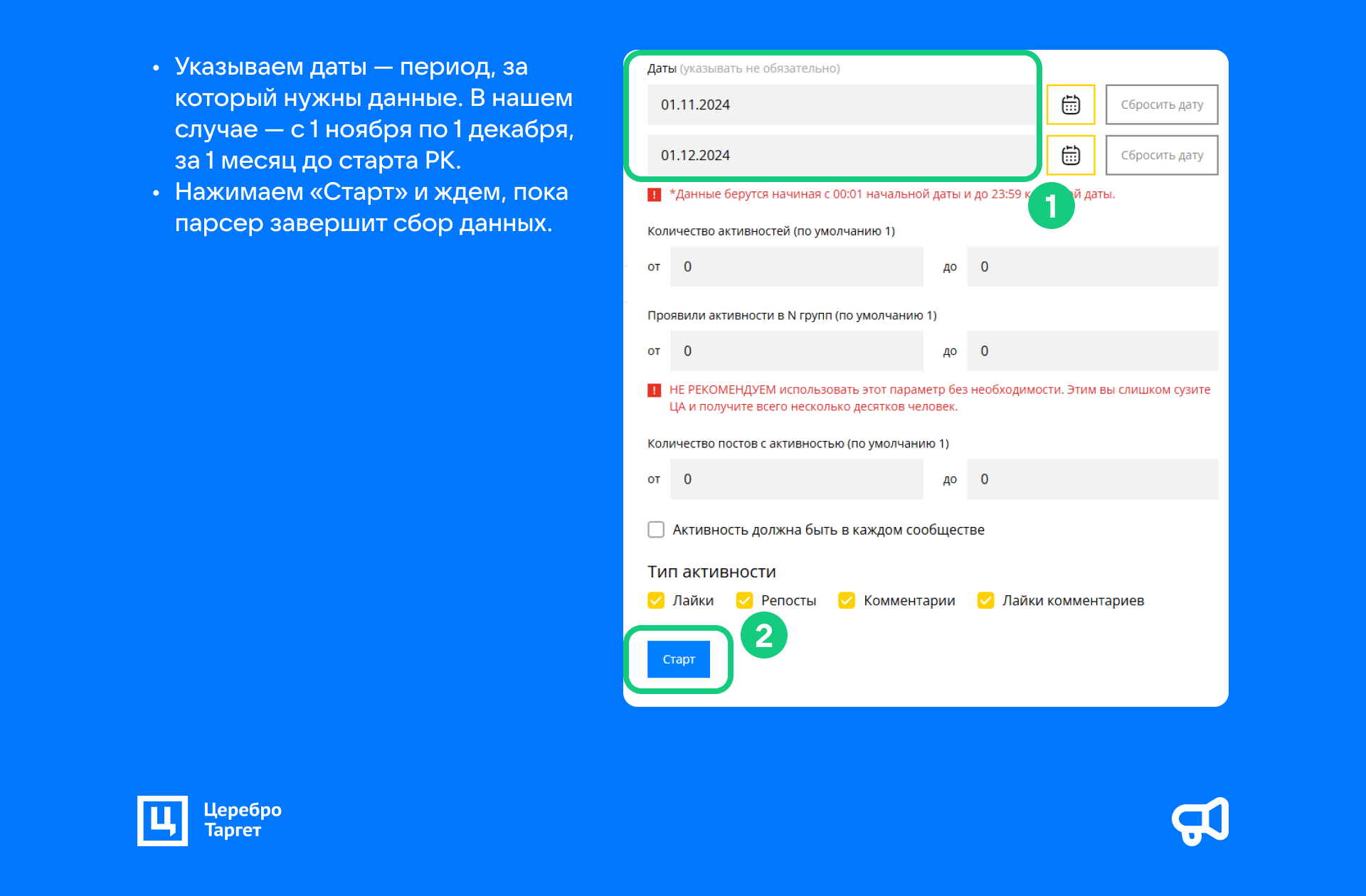 Дальше покажем, как подобрать сообщества для размещения через парсер Ц.