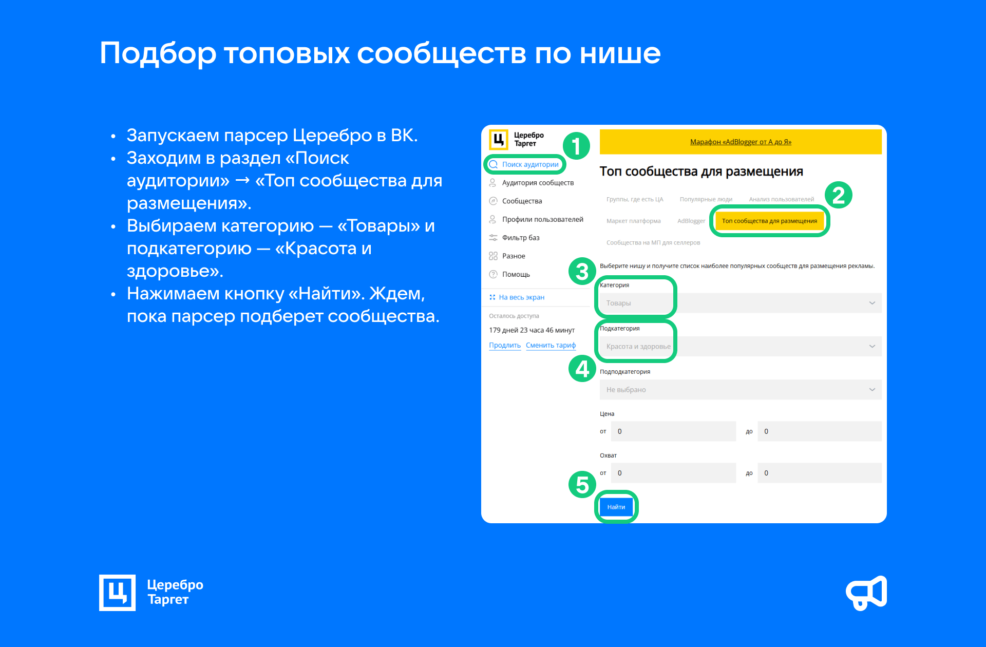 Сначала обозначим общий порядок действий при подборе сообществ для продвижения селлеров.