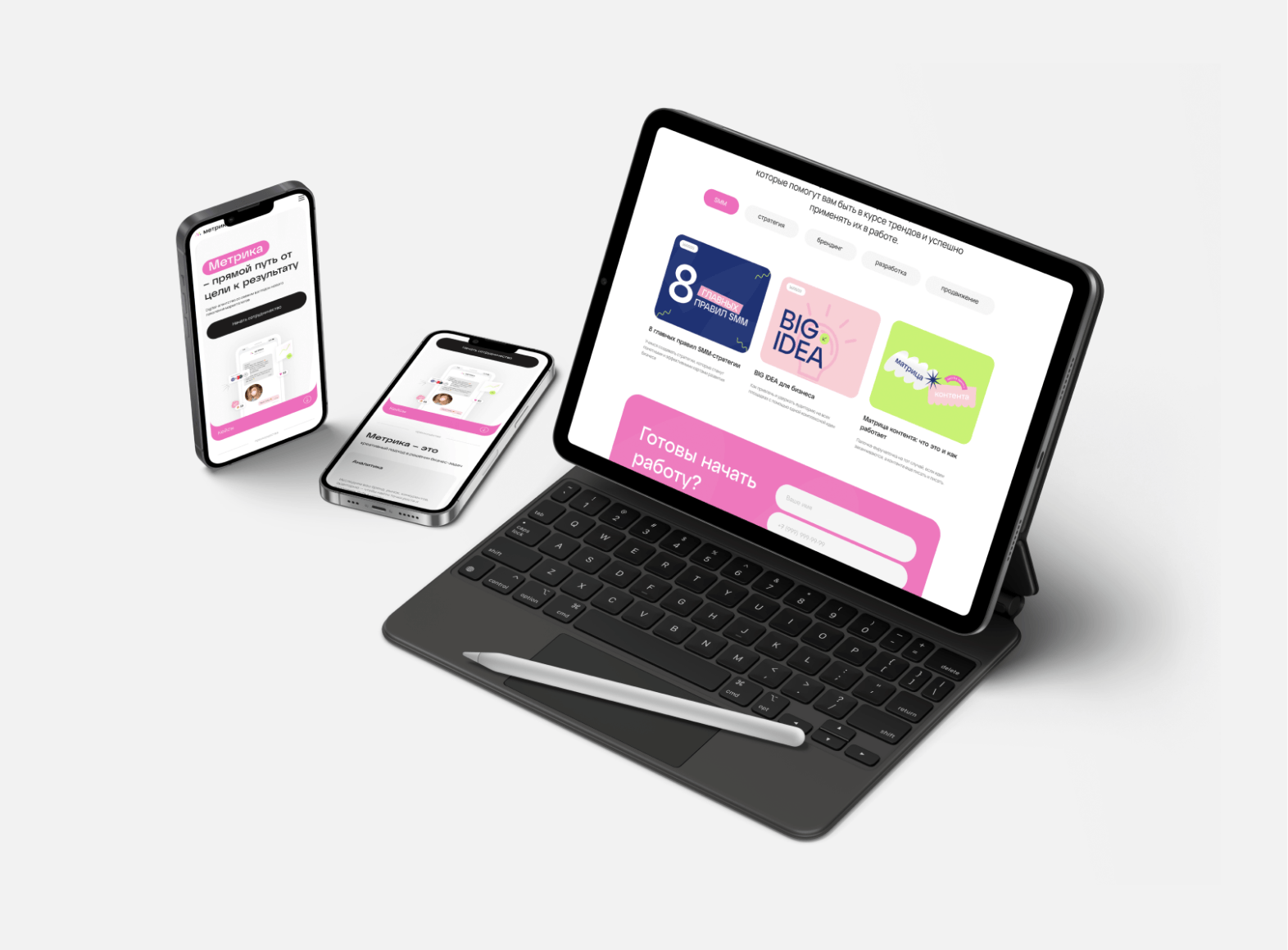 2023 год — год потока клиентов в «Метрике». Мы не просто развивали агентство, а усиливали бренд, поэтому решили: тут никак без мощной онлайн-площадки, которая будет и привлекать клиентов, и одновременно отражать все внутренние ценности. А еще сайт — хороший стимул находить больше клиентов, чтобы однажды вырасти в агентство с десятками услуг и разветвленной командой единомышленников.