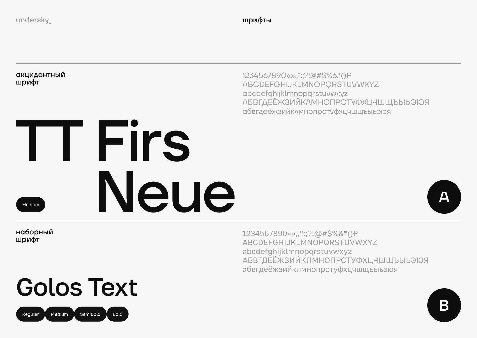 TT Firs Neue – современный геометрический гротеск, который отлично передает технологичный и прогрессивный характер агентства. Его лаконичные формы и четкие очертания делают заголовки выразительными и динамичными.