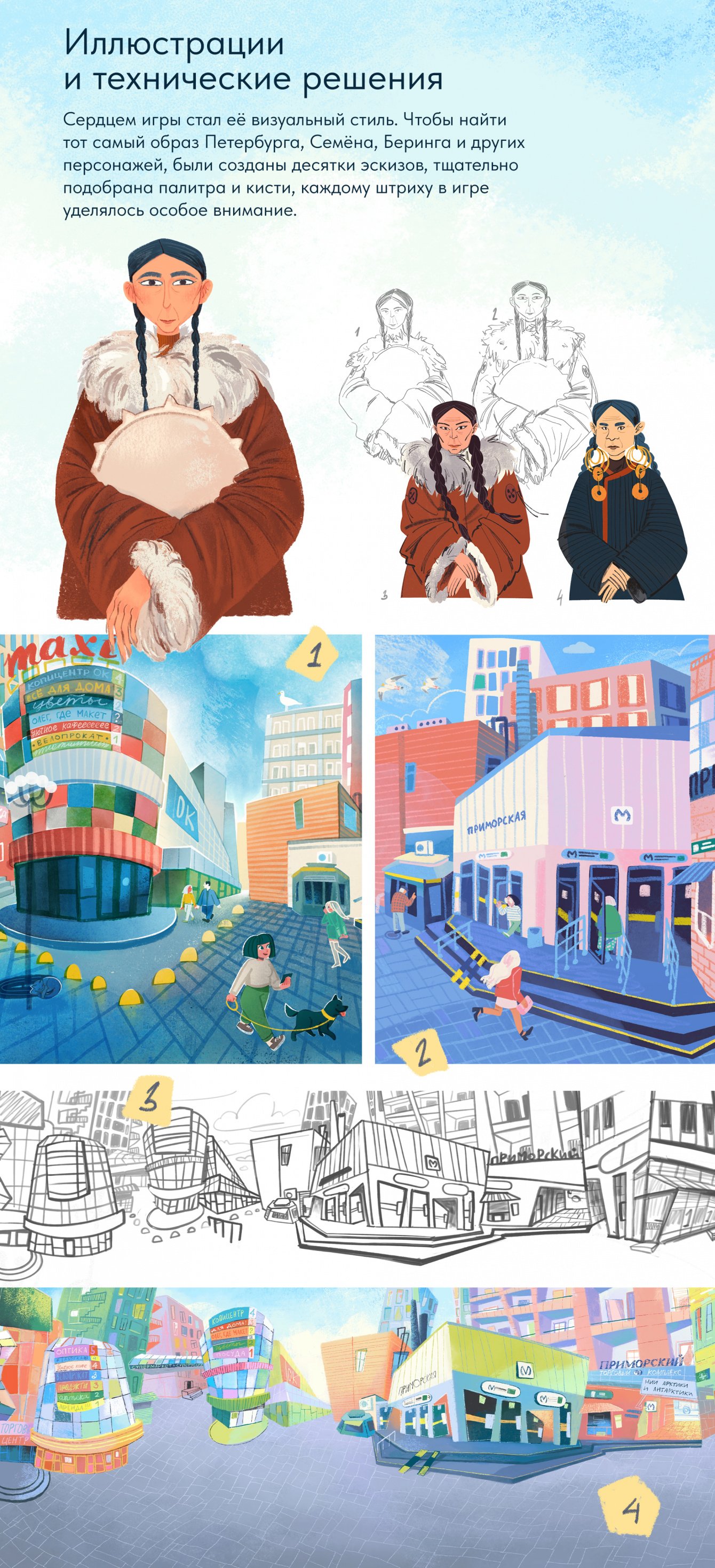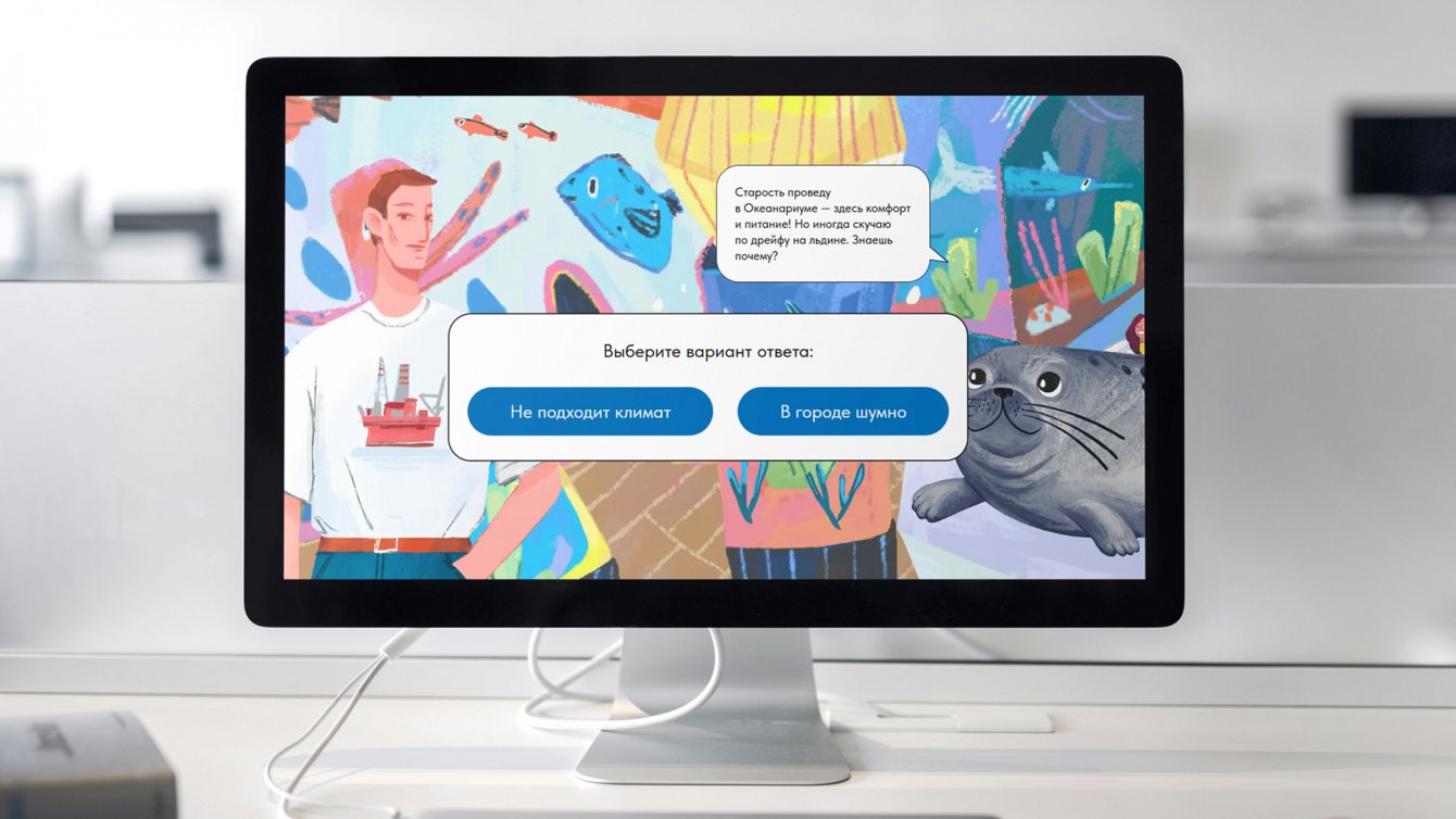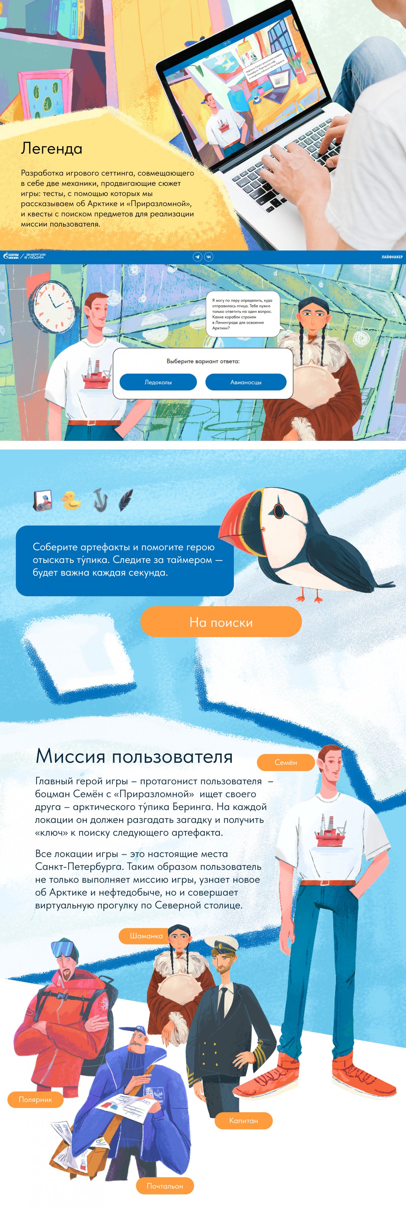 Создание digital-проекта, который поможет простым языком и в непривычном для браузерных игр формате (мы выбрали бродилку) рассказать аудитории о работе нашей компании в Арктике, необычных профессиях нефтянки, и о том, как найти Север в Петербурге.