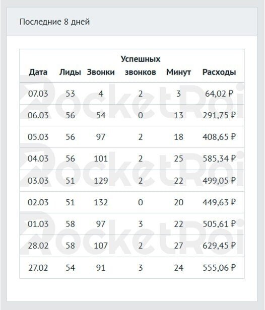(Скриншот делался в не сезон, в момент написания рейса - и всё равно вы видите около 2 лидов в день).