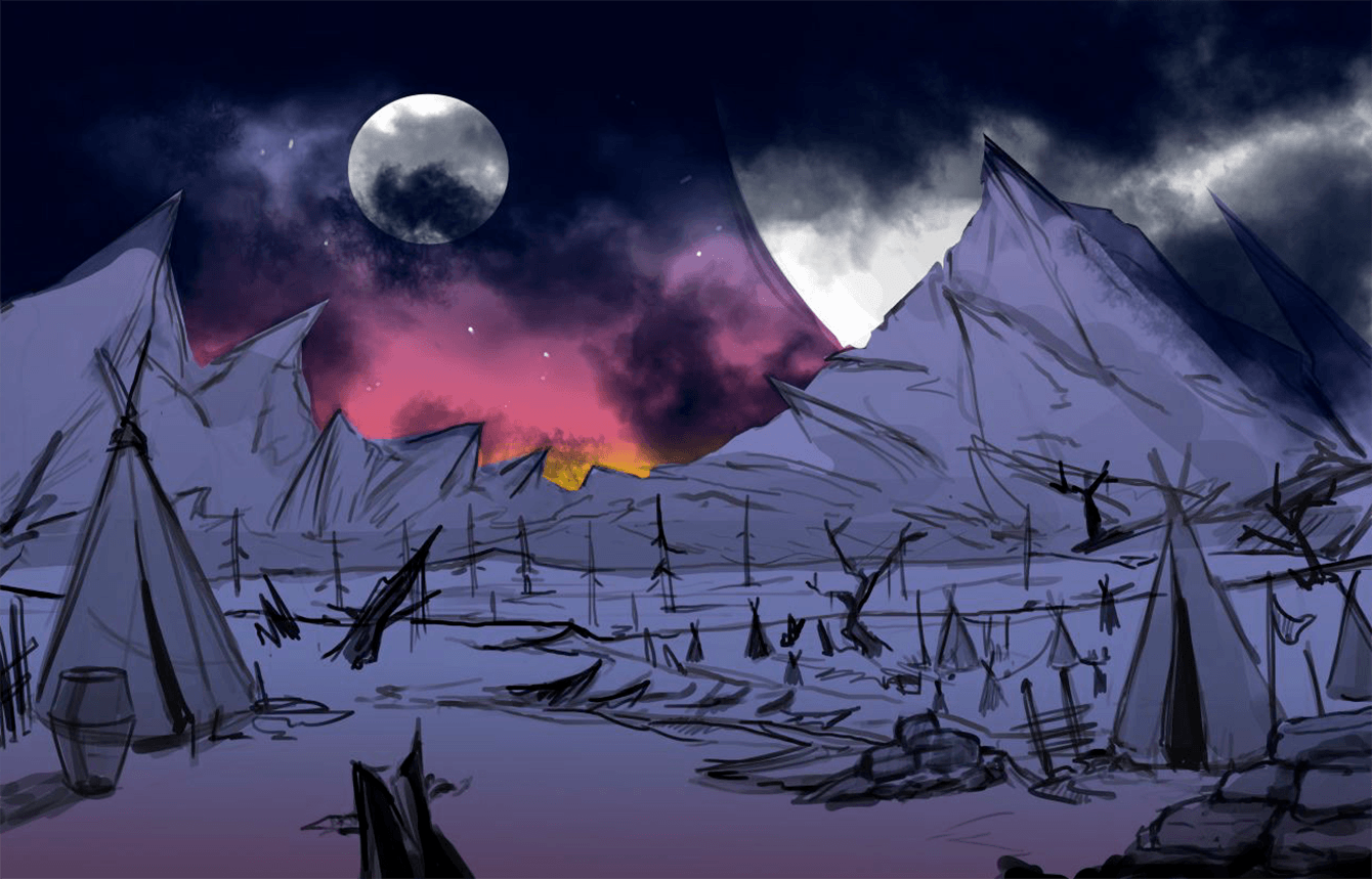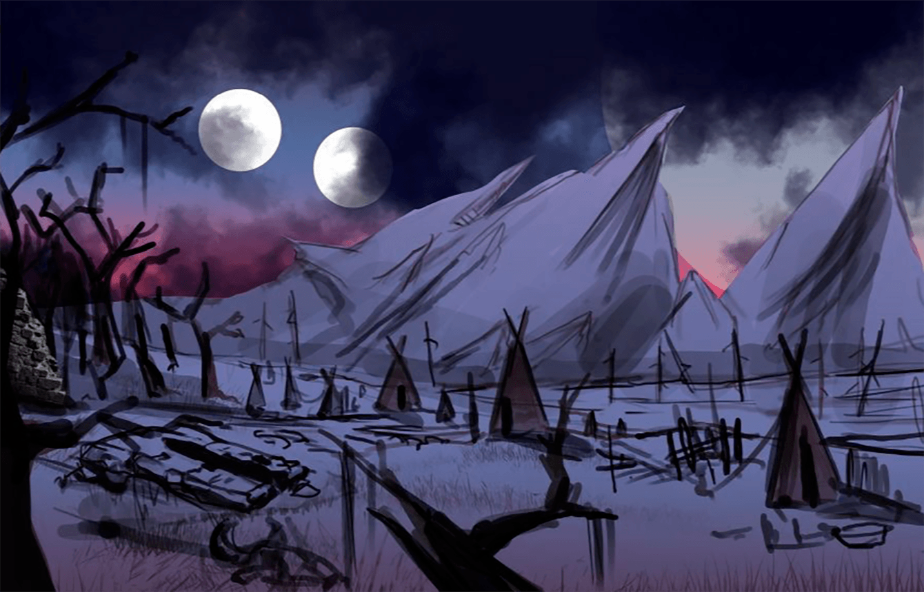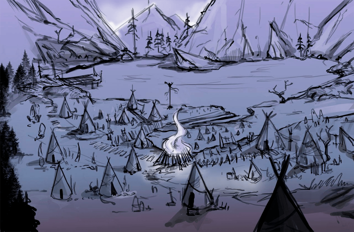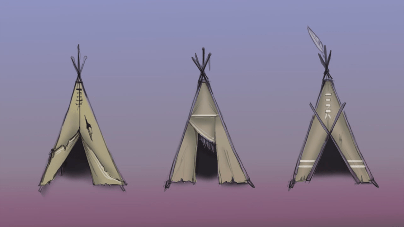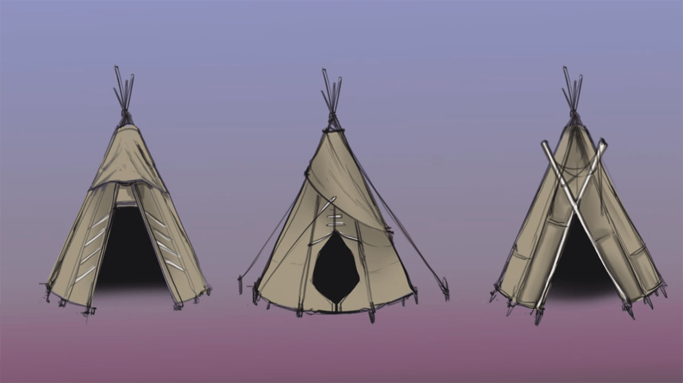 Одежду, вигвамы и другие тканевые элементы мы создавали в Marvelous Designer, после чего выполняли текстурирование в Substance Painter.