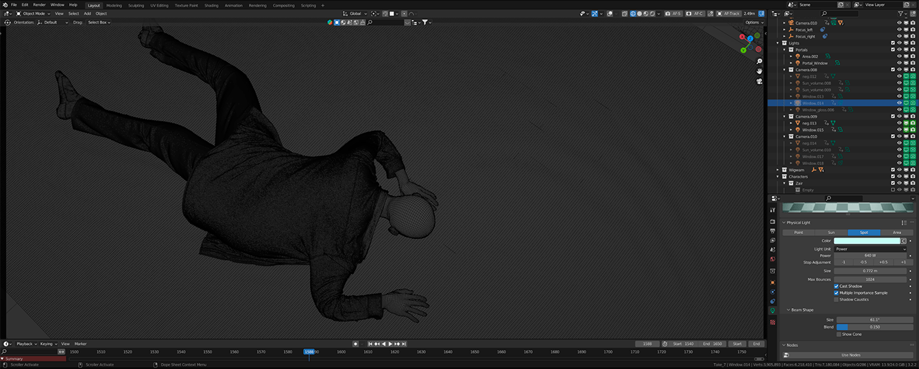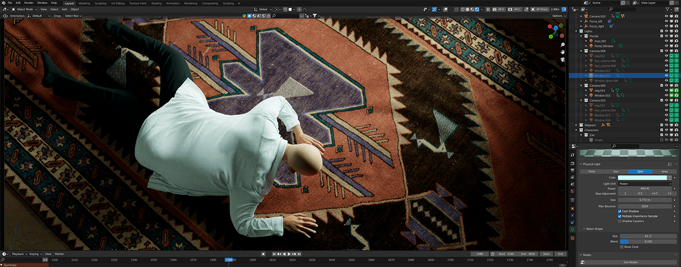 Использовались программы: Blender, Maya, Houdini, Marvelous Designer, Zbrush, Wrap4D, Substance 3D Painter, DaVinci Resolve 17, Adobe After Effects, Dehancer, Photoshop