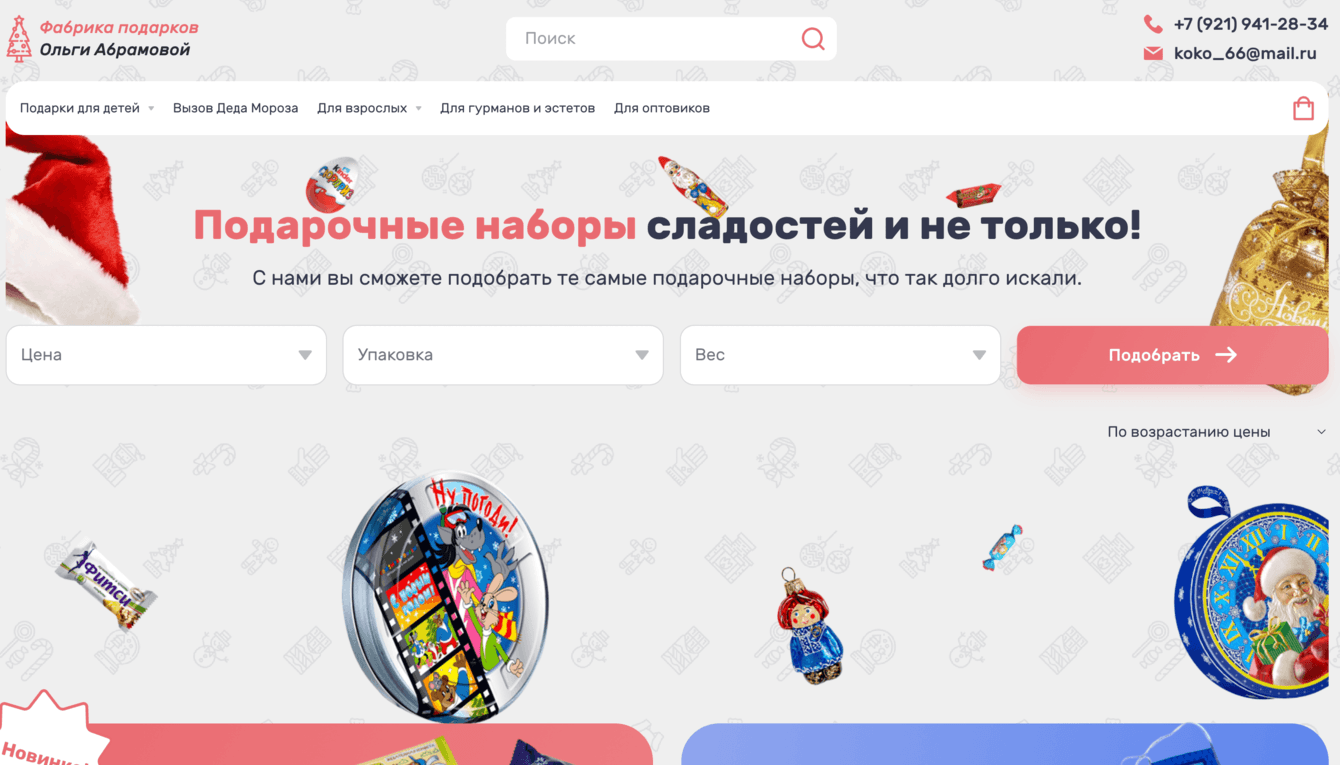 Конечно, судить не только нам. Но если взять всю поисковую выдачу в тематике новгодних подарков – наш будет самым лучшим. Можно оценивать визуальную составляющую, можно функциональную, без разницы, – так или иначе наш проект выше уровнем. Уверены, что клиент не пожалел о том, что решил заказать сайт у нас.