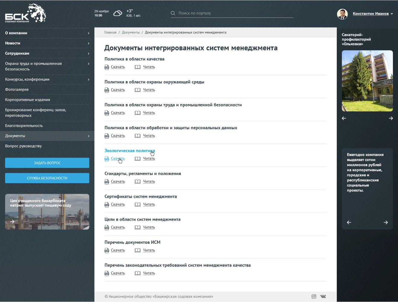 Запустили проект на внутреннем контуре Заказчика, разработали инструкции по управлению порталом и обучили сотрудников администрированию портала. На данный момент корпоративным порталом пользуются все сотрудники компании БСК