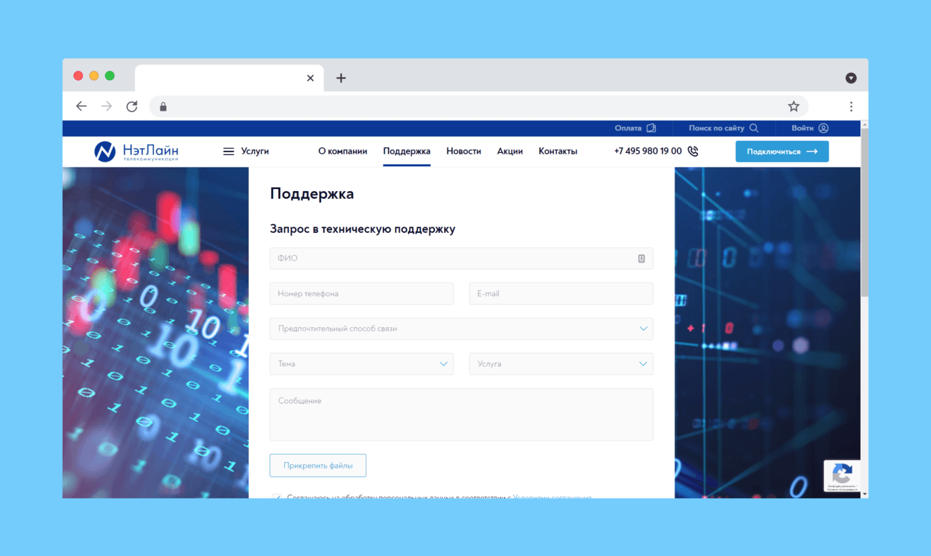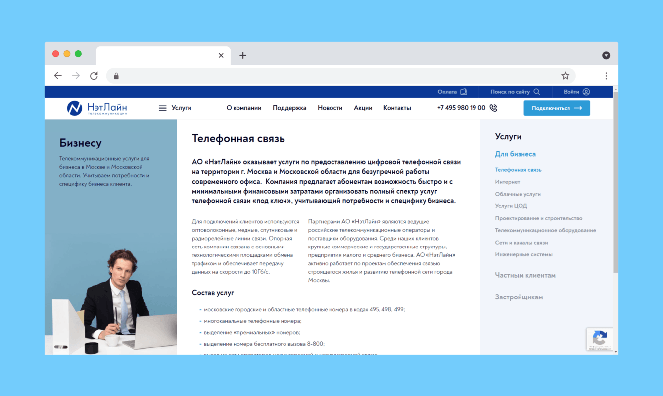 2. В сфере информационных технологий всегда высокая конкуренция, и чтобы быть лидером, нужно выгодно отличаться от коллег. Компания «Нэтлайн» - не исключение, этой компании тоже приходится бороться за свое место в рейтинге первых компаний. Для нашего заказчика было крайне важно, чтобы новый ресурс выделял компанию от конкурентов, предлагающих похожие услуги.