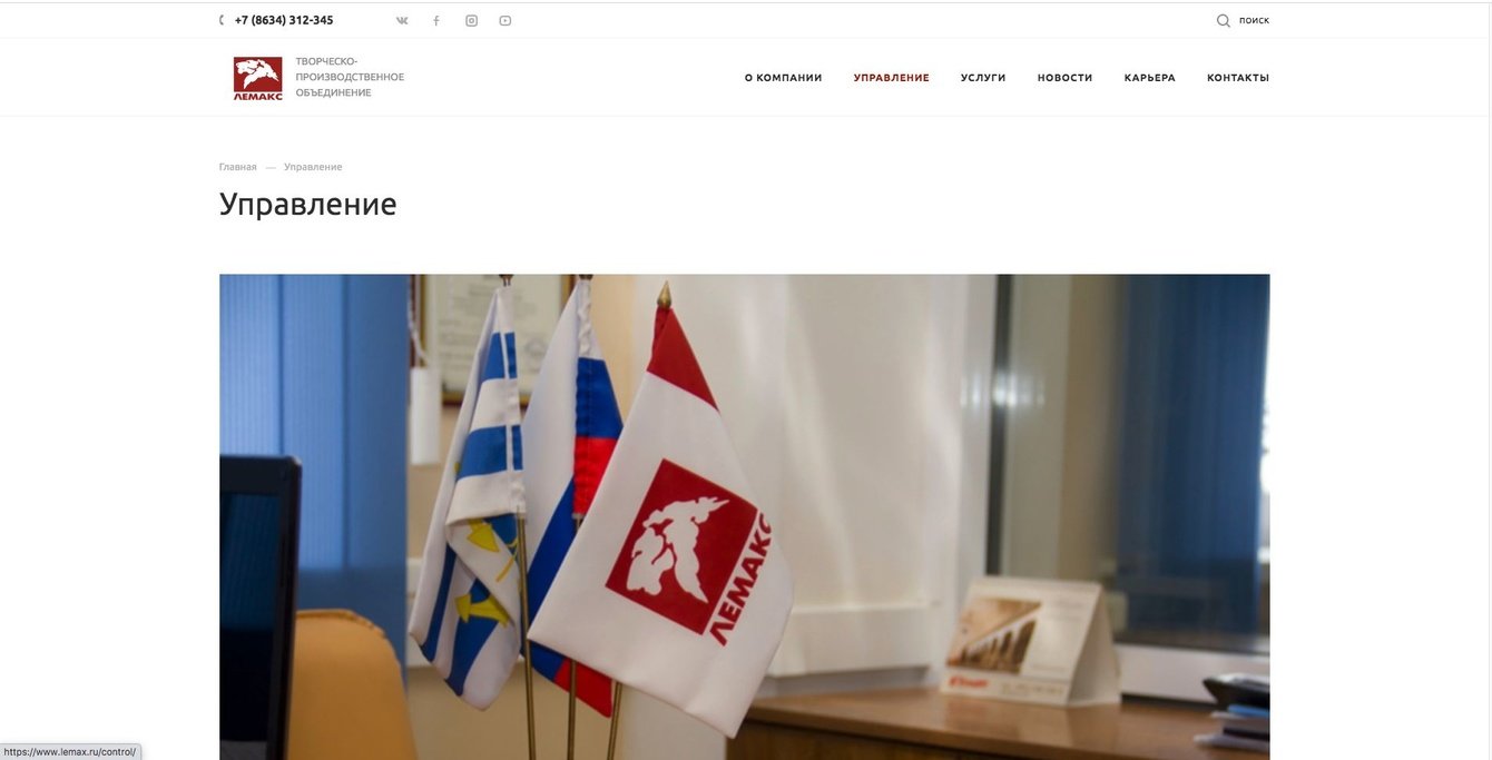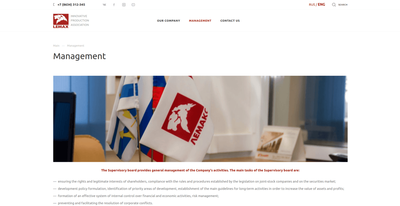 В данном разделе разместили информацию об общей структуре руководства компании. Отразили их задачи и представителей.