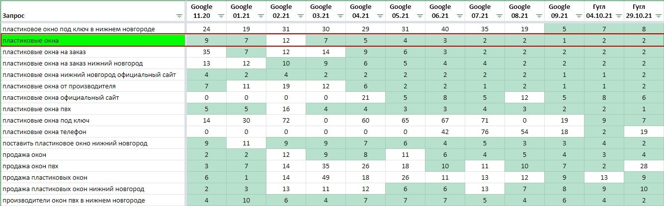 Вывод ключевого запроса "Пластиковые окна" в Google