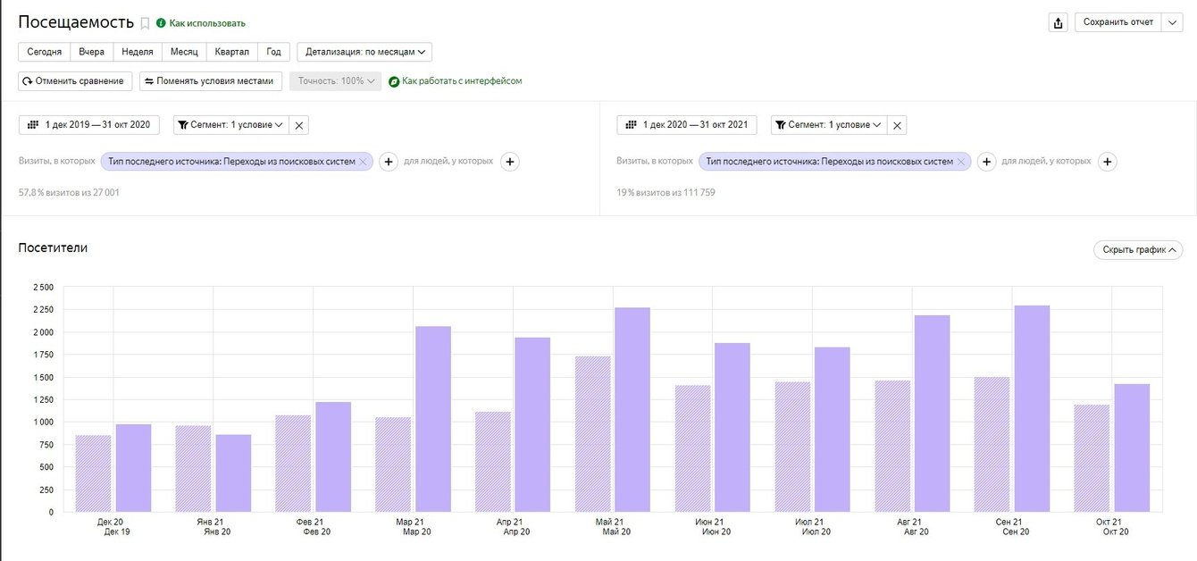 Количество посетителей из поисковый систем выросло по сравнению с прошлым годом