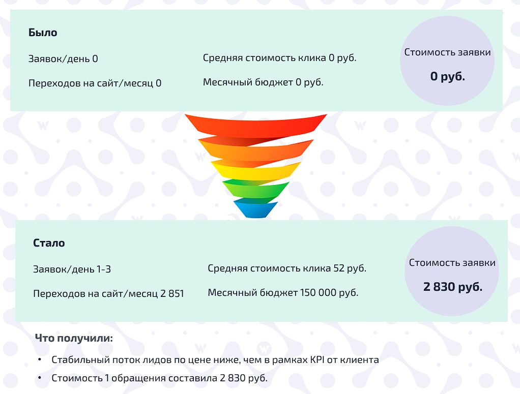 1-3 заявки в день (переходы на сайт — 2 851 в месяц)