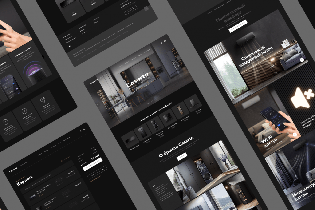 Из сайта из пары страниц Casarte превратился в полноценный интернет-магазин со стильным каталогом из лендингов. Для каждого товара мы разработали конфигуратор для выбора техники по характеристикам, интегрировали