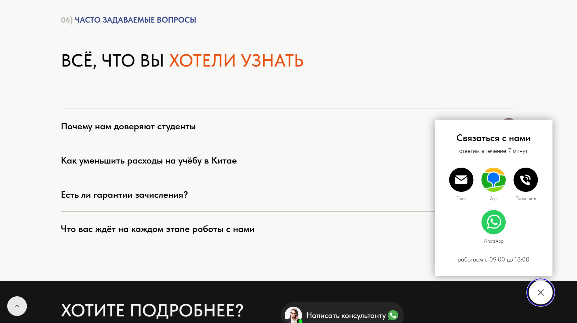 Разработали лаконичную структуру и фирменный дизайн. Наполнили страницами с описанием услуг, партнёрских вузов, FAQ и формой обратной связи. Сделали адаптивную верстку и удобную навигацию, чтобы родители и студенты быстро находили ответы.
