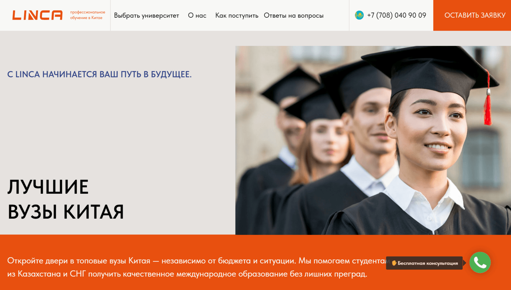 Новая компания на рынке Казахстана — LINCA — должна быстро стать заметной для абитуриентов и их родителей: выглядеть профессионально, собирать заявки и отвечать на них без задержек. Цель — запустить сайт, выстроить обработку лидов и запустить первичный трафик от целевой студенческой аудитории.