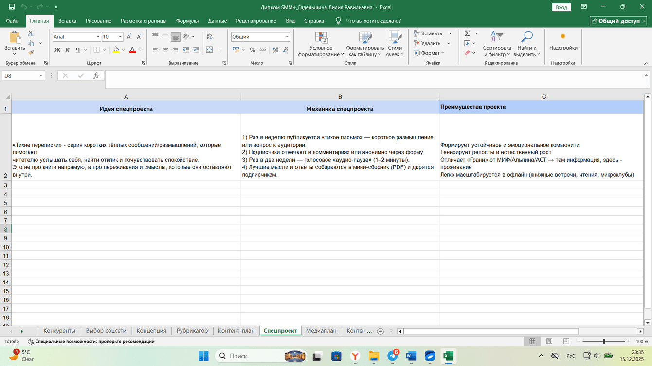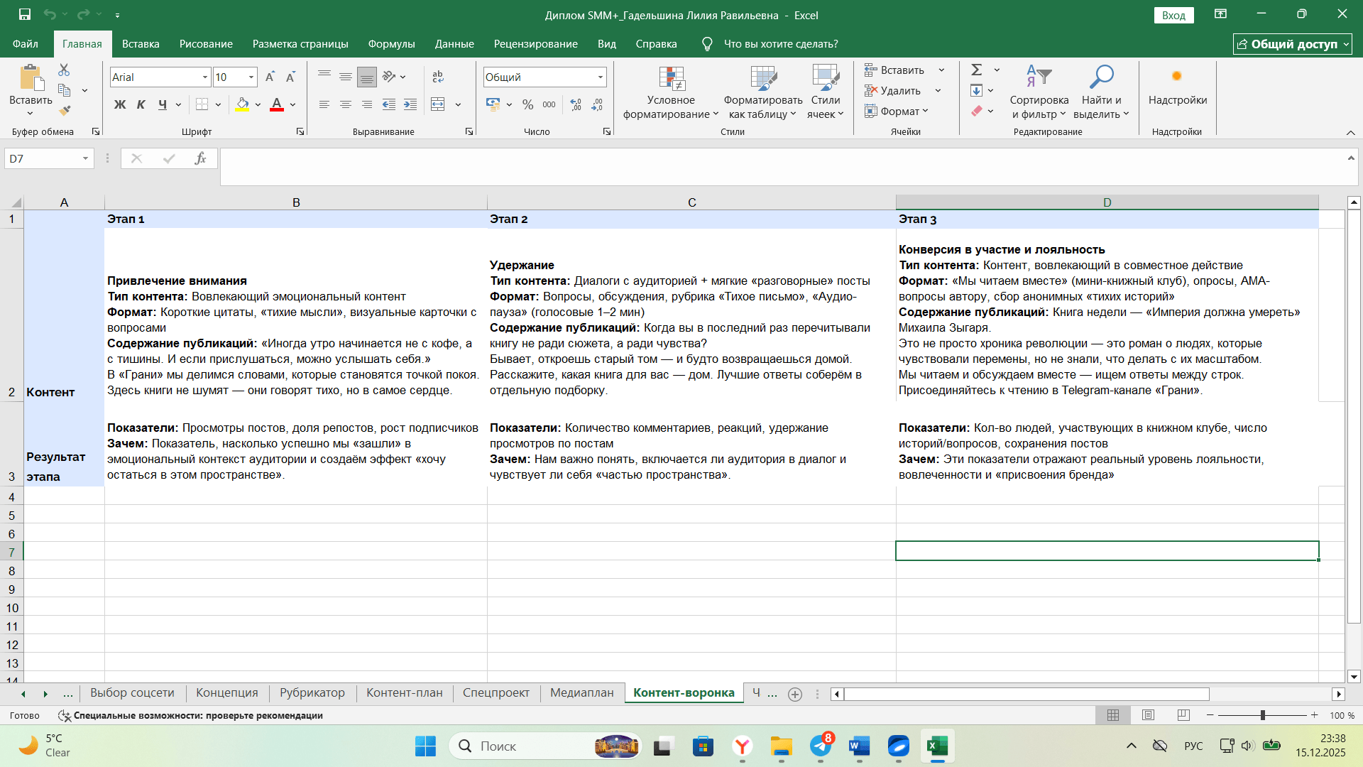 Итог: сформирована эффективная SMM-стратегия, направленная на рост узнаваемости бренда, вовлечения аудитории и увеличение продаж, подтверждающая готовность специалиста к самостоятельной работе в сфере SMM.