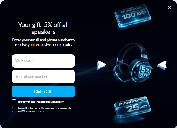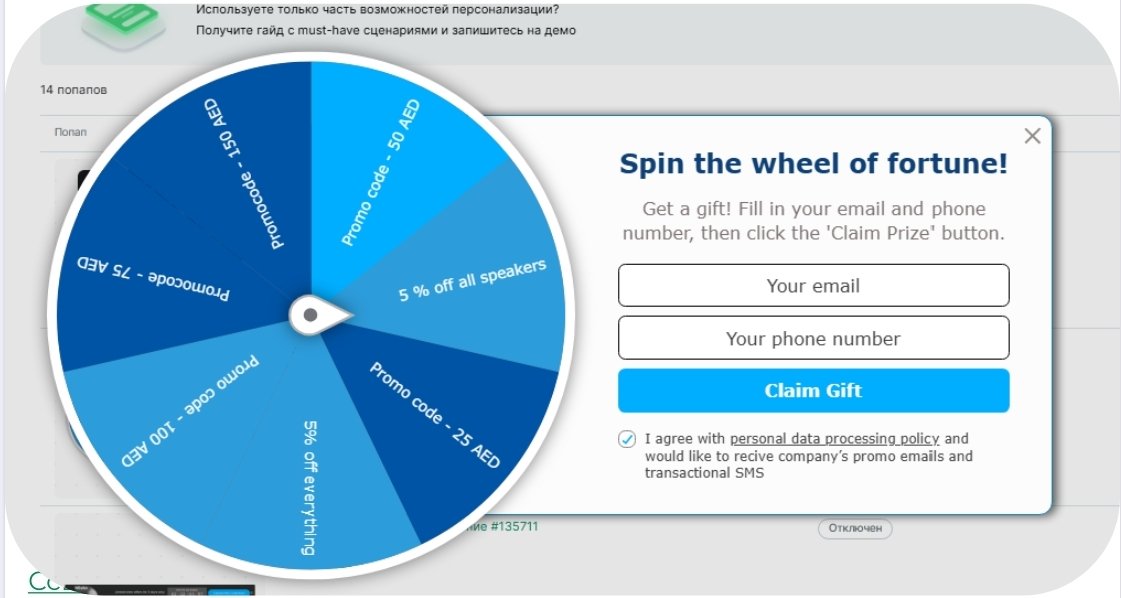 В качестве подарков были предложены: промокоды на 25, 70, 100 и 150 дирхам, скидки 5% на всё или отдельную категорию, секретный приз.