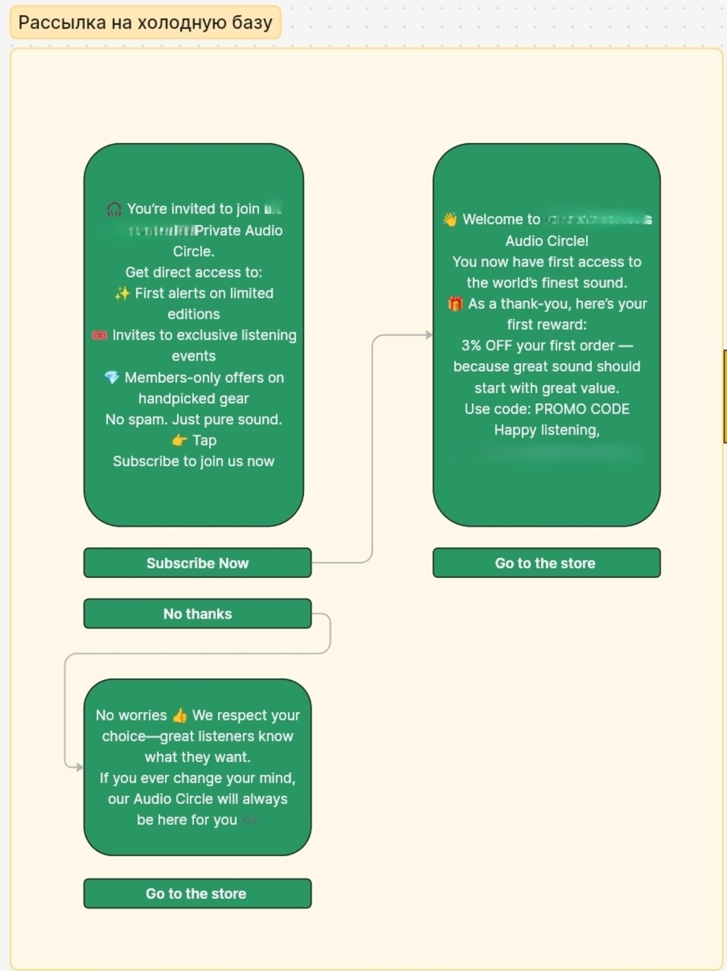 - Приветственная цепочка. Помогает клиенту познакомиться с брендом и укрепляет лояльность.