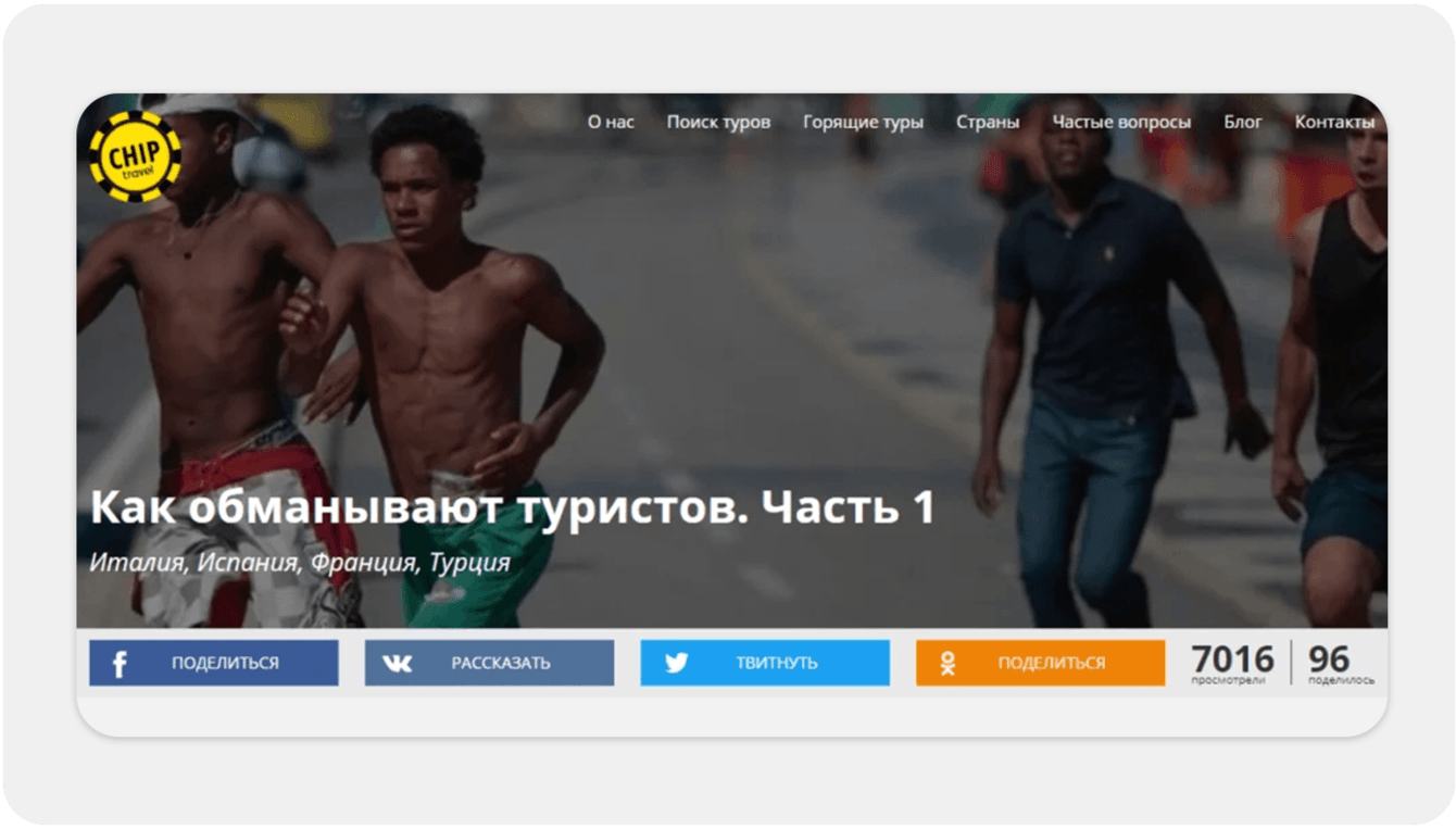 Chip.Travel — это турагентство, которое по низкой цене продает пакетные туры заграницу. С 2017 по 2020 помогали ребятам с контентом.