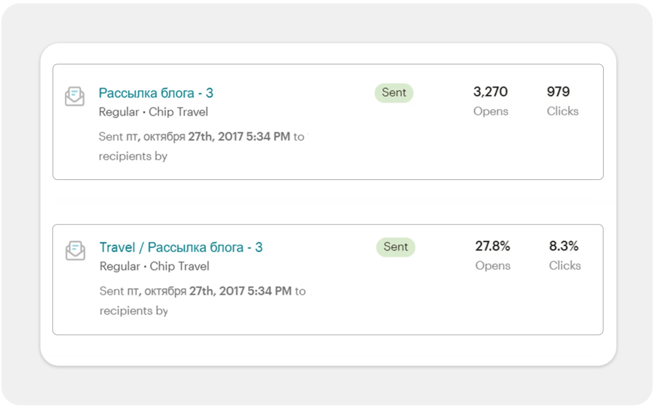 CTR получилось поднять с 3% до 8%, а OR поднялся до 27,8% после первых же писем.