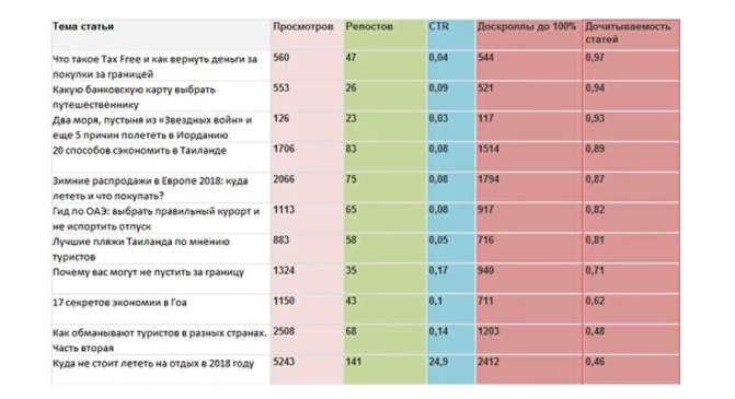 Контент-план постоянно адаптировали под темы, которые давали хорошую вовлеченность. Например, стали чаще писать на финансовые темы, так как у статей о возврате НДС и об обманутых туристах одинаковое количество дочитываний, хотя вторую открыло в 10 раз больше человек. Так мы поняли, что тема денег читателям интереснее.