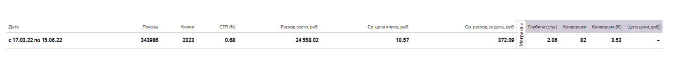 Мы разработали интернет-магазин, подготовили посадочные страницы для приема трафика, собрали целевые запросы, сформировали адресные рекламные объявления. За несколько месяцев было совершено 82 конверсии в заявку, стоимость конверсии составила-375 рублей