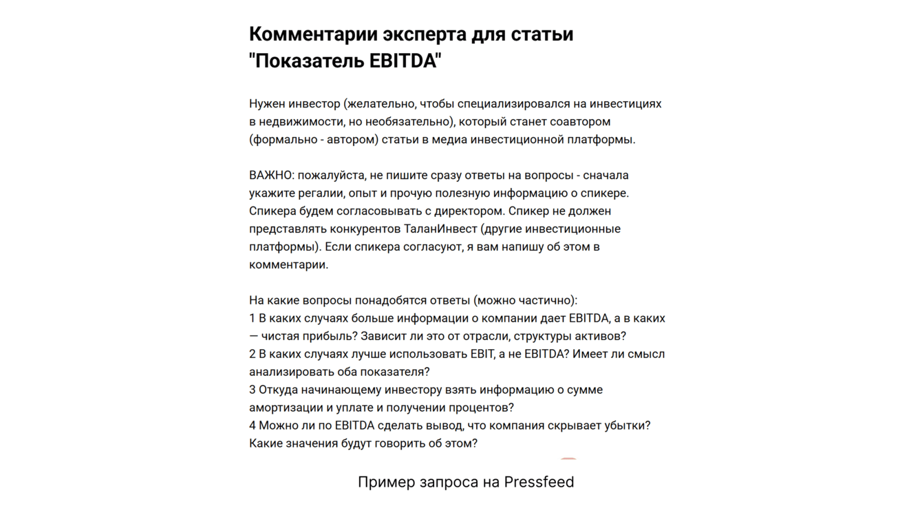 «Мы искали экспертов, чтобы углубить материалы и добавить личного опыта инвесторов. Они консультировали по сложным вопросам, давали комментарии или писали статьи. За полтора года работы с проектом привлекли десятки экспертов. В основном их искали на сервисе Pressfeed. В ответах экспертов могли попадаться тексты, сгенерированные ИИ или переписанные из чужих статей. Мы проверяли их на уникальность, фактическую точность и соответствие запросу. Если эксперт давал размытые или поверхностные ответы, их отбраковывали. В целом приходило 3-5 полезных откликов».