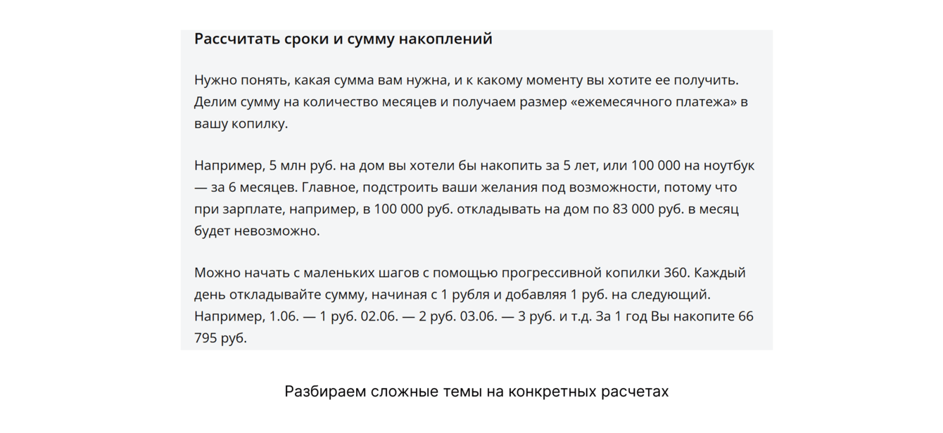 После трех месяцев правок удалось найти золотую середину: писать достаточно серьезно для клиента, но доносить суть с помощью примеров, расчетов и простых объяснений.