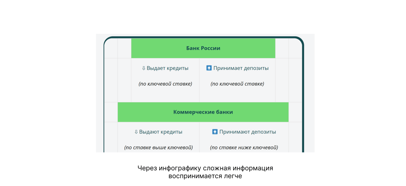 Чтобы донести сложную информацию, рисовали инфографику, таблицы и схемы.