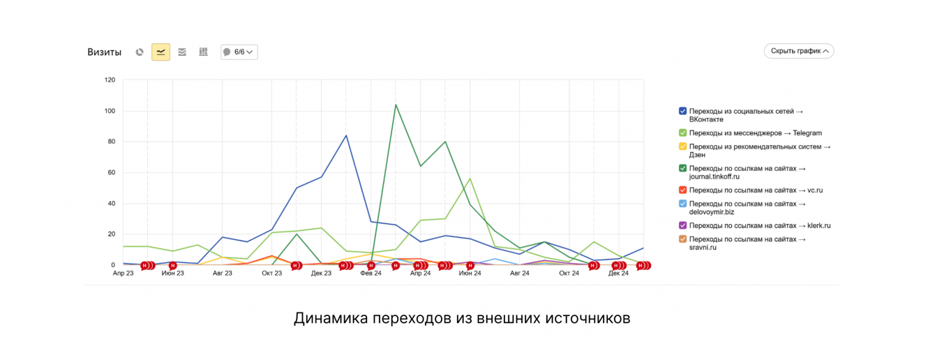 С ноября 2023 по декабрь 2024 размещали материалы на площадках: