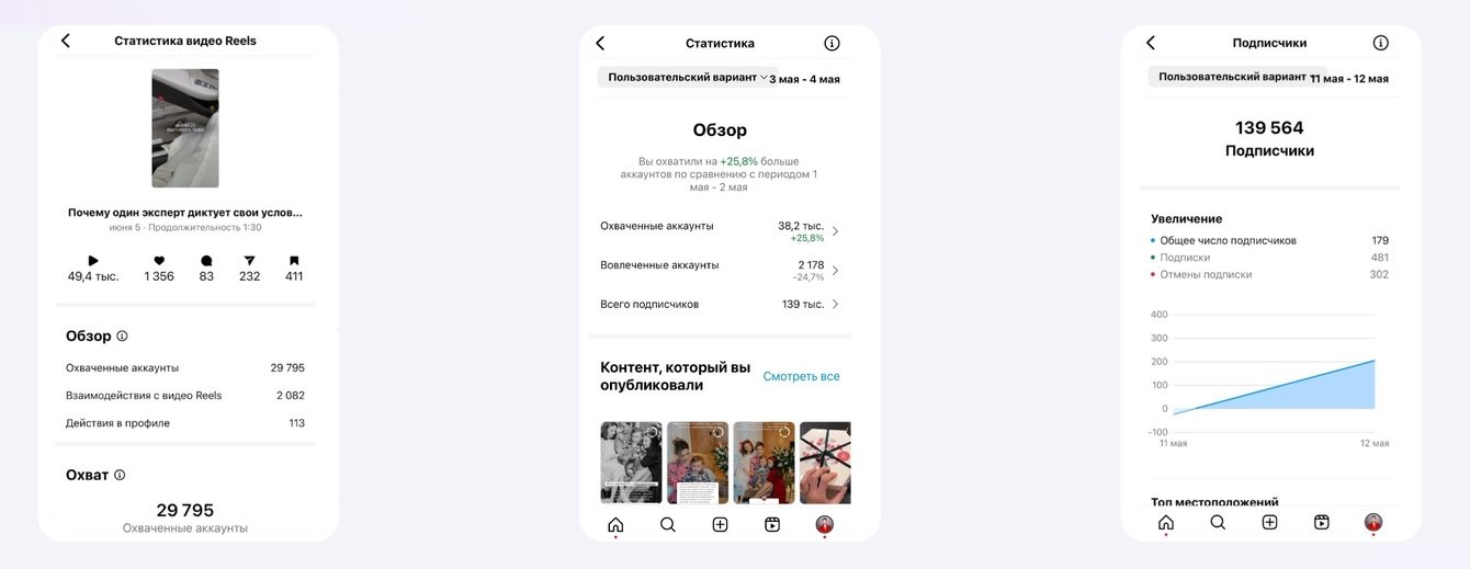 3) Охваты в сторис – 1500-3000 просмотров при аудитории 130 000 подписчиков