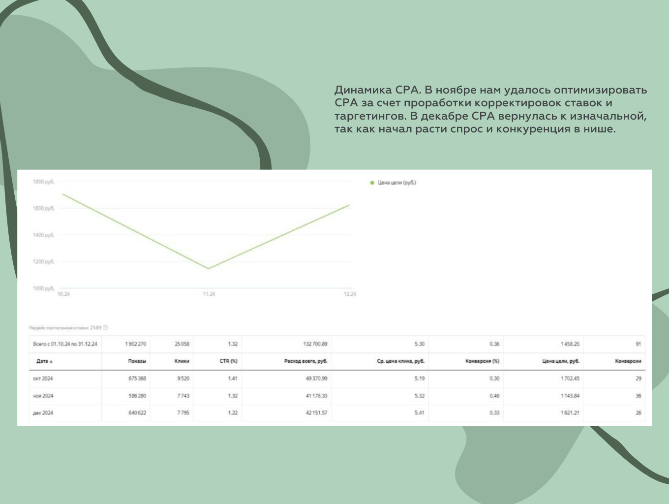 ➤ Удалось удержать среднюю стоимость заявки (CPA) в рамках целевого бюджета — 1 666 рублей, а в ноябре снизить ее на 30%.