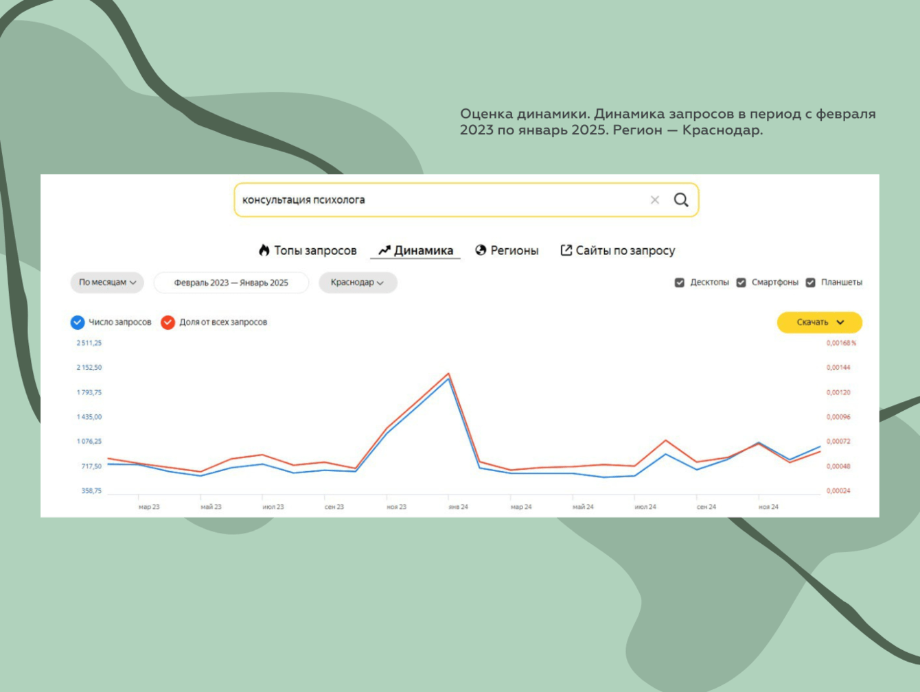 Главная сложность, которая у него возникла, связана с тем, что сфера психологии переполнена конкурентами и сайтами-агрегаторами. В связи с этим помощь в продвижении была крайне необходима.