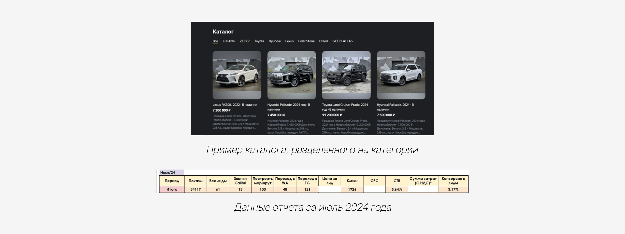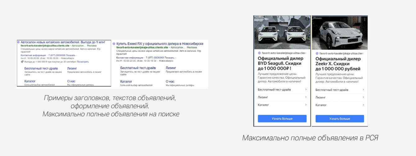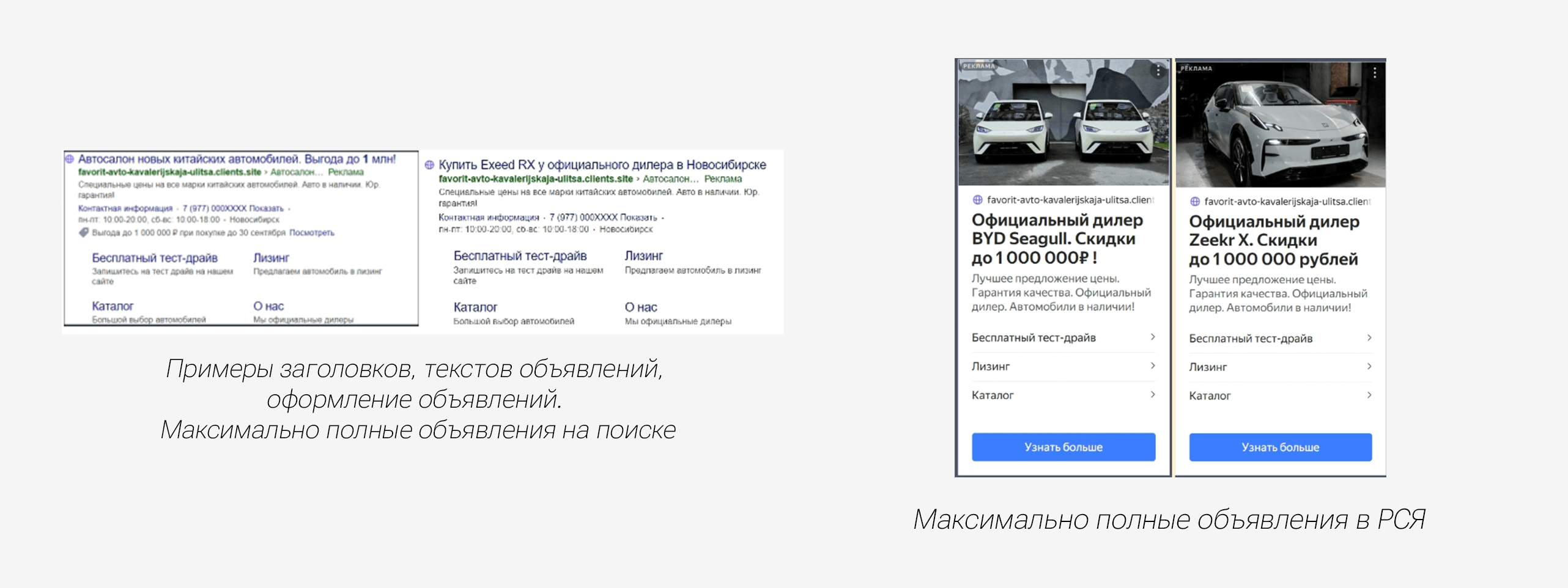 2) Отдельно выделили РК на поиске по модельным запросам (марки авто, которые есть в наличии и под заказ).